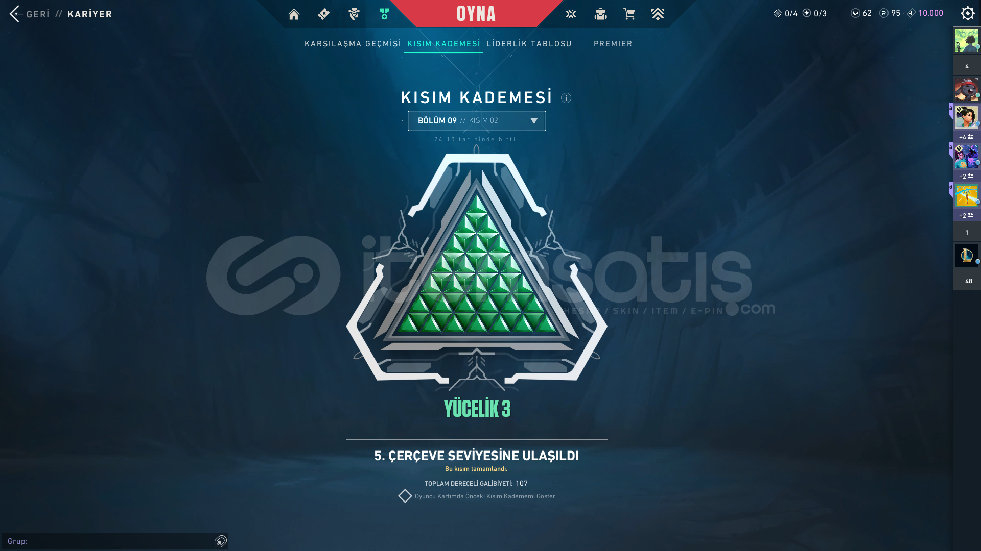 Hesabın peak rankı yücelik 3 tür uğurluk bulunur