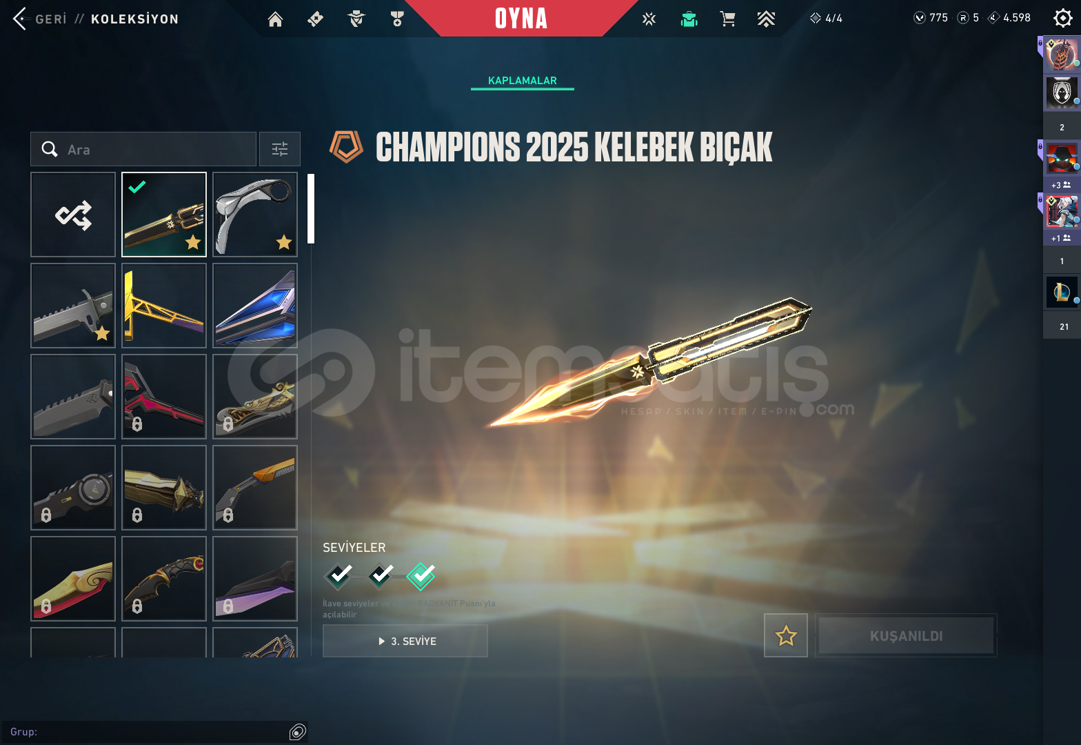 9-champions 2025 kelebek-iyon karambit-uzaylı avcısı-asil balta bıçak