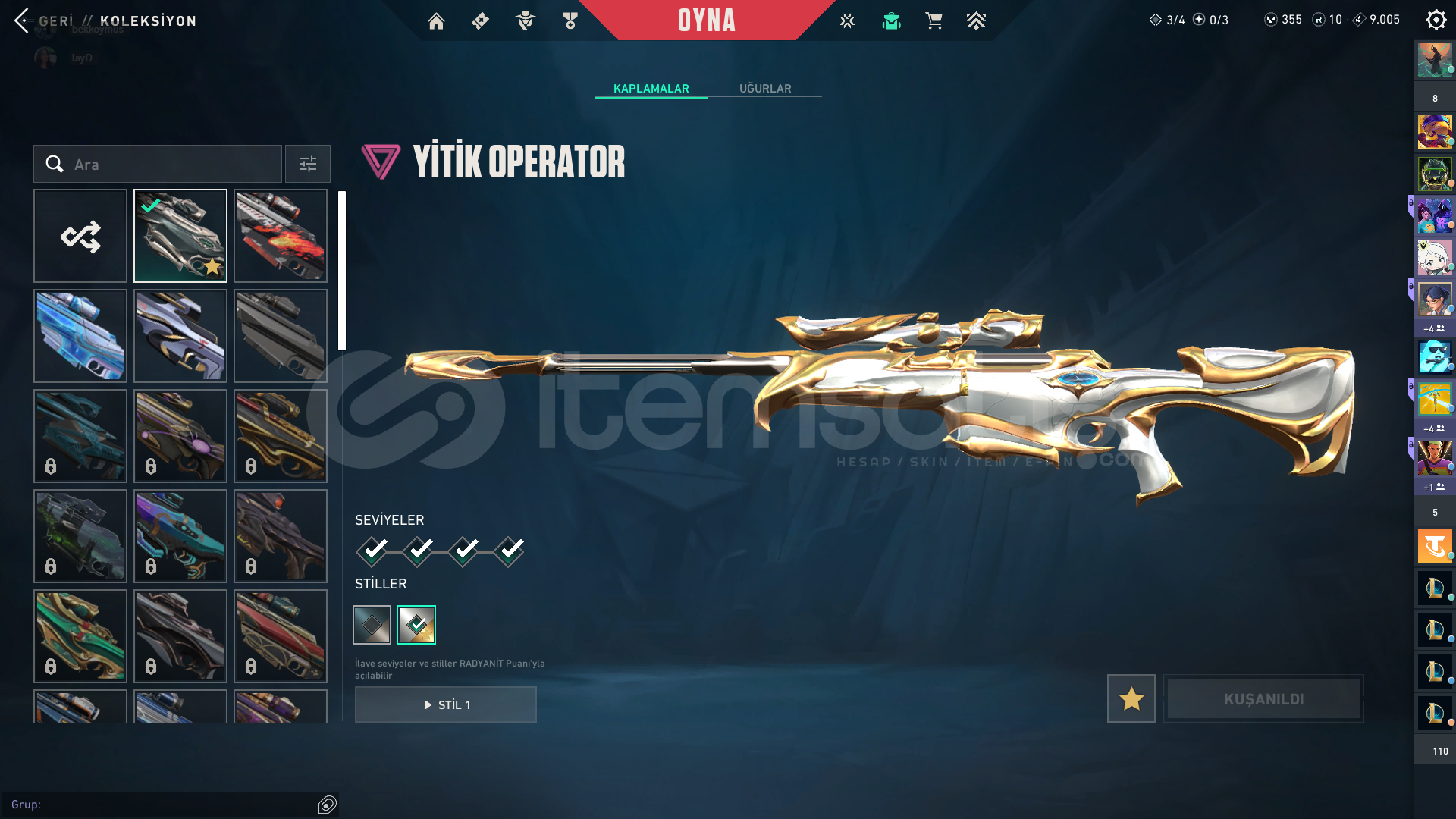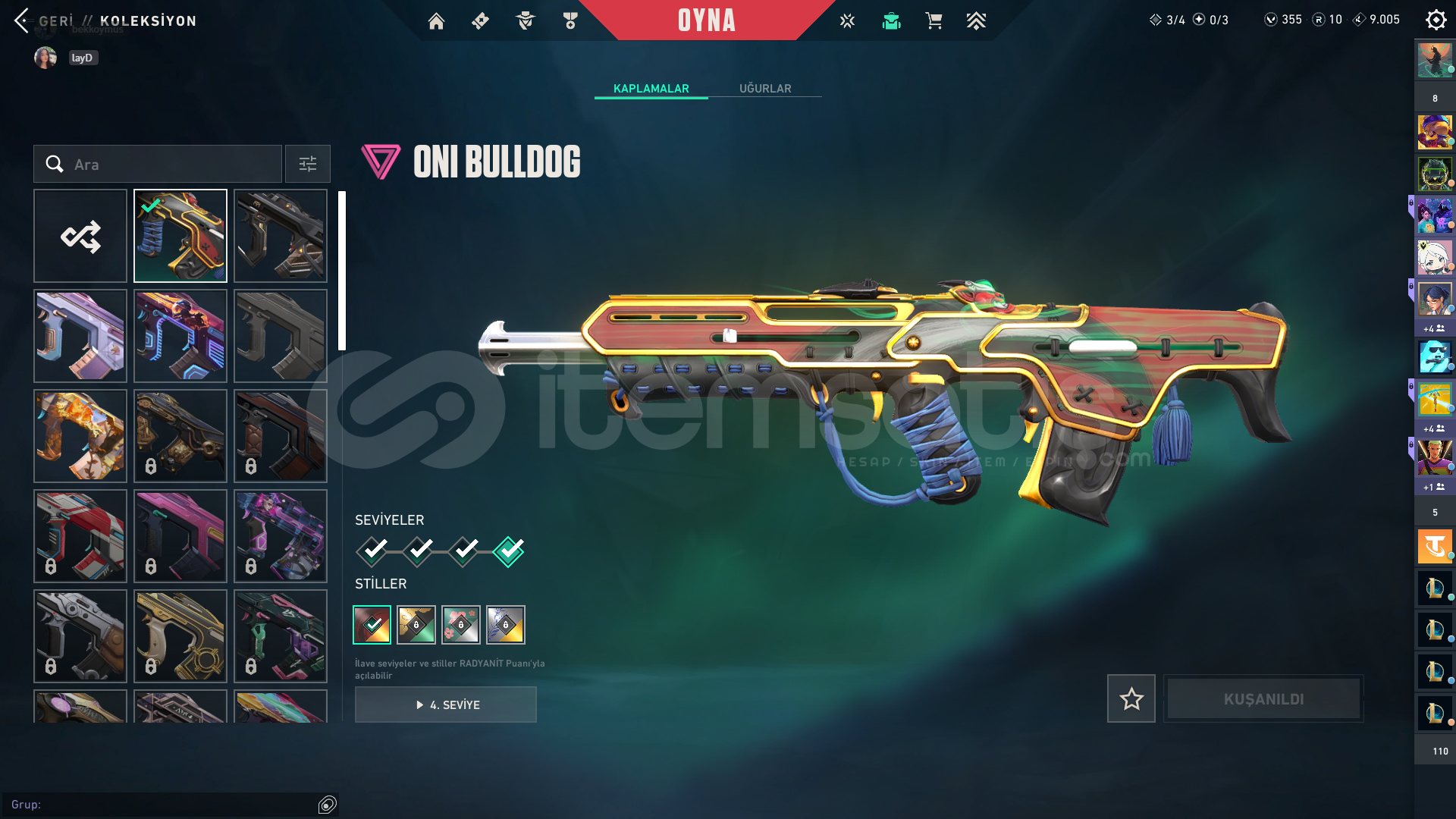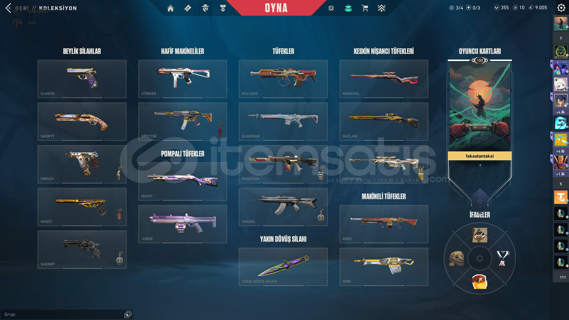 Hesapta oni 2.0 ve faz korucuyu setleri vardır.Onun dışındaki skinler fotoğrafta görünmektedir.Hesabın 2. sahibiyim sorularınız için dm.Cüzi bir miktar pazarlık olur.
