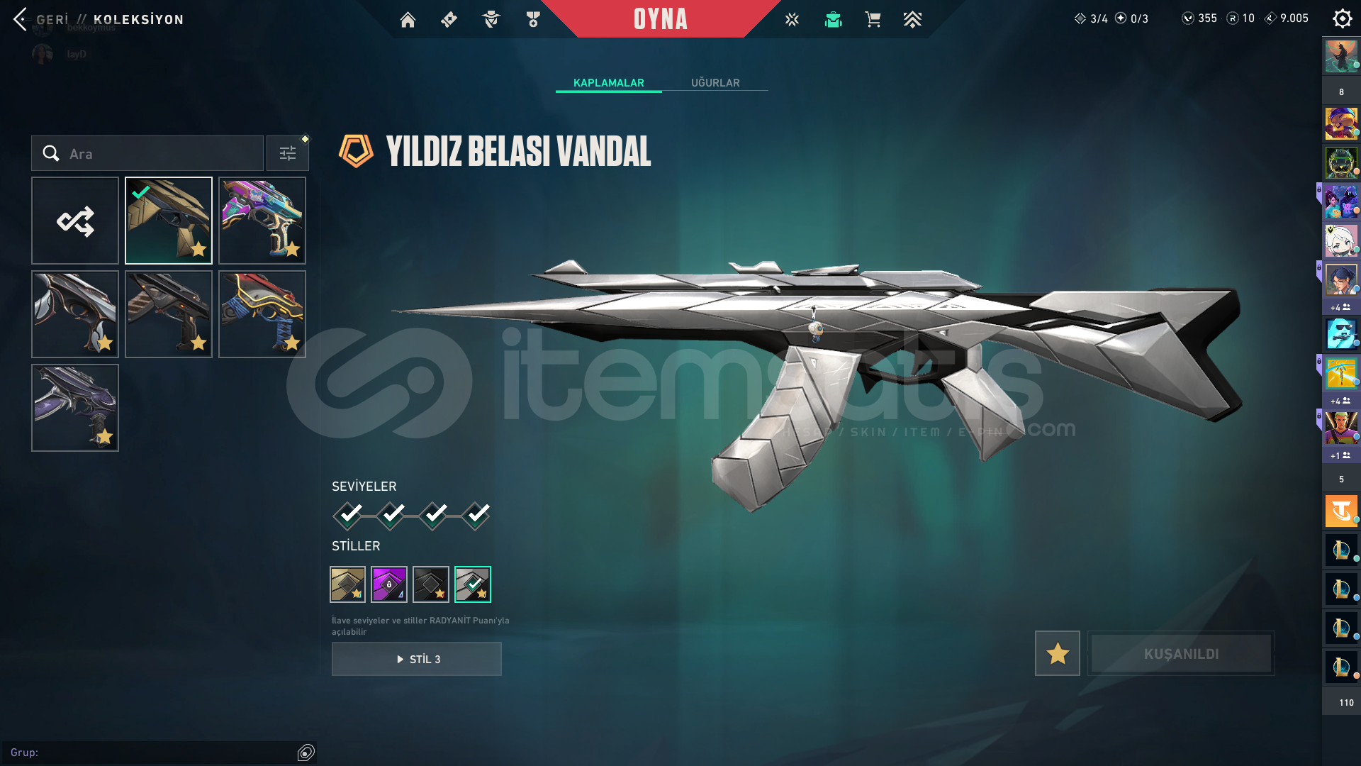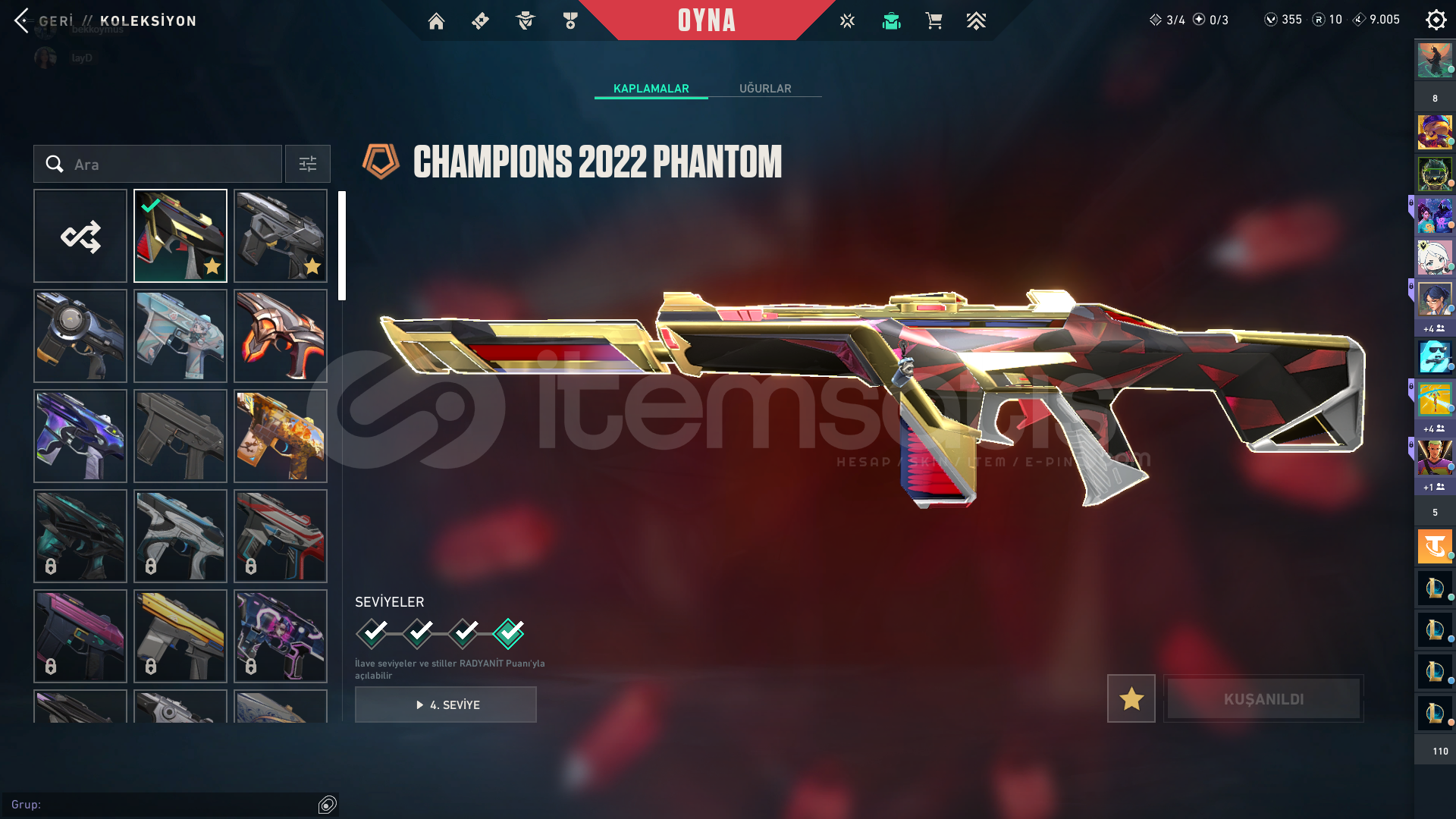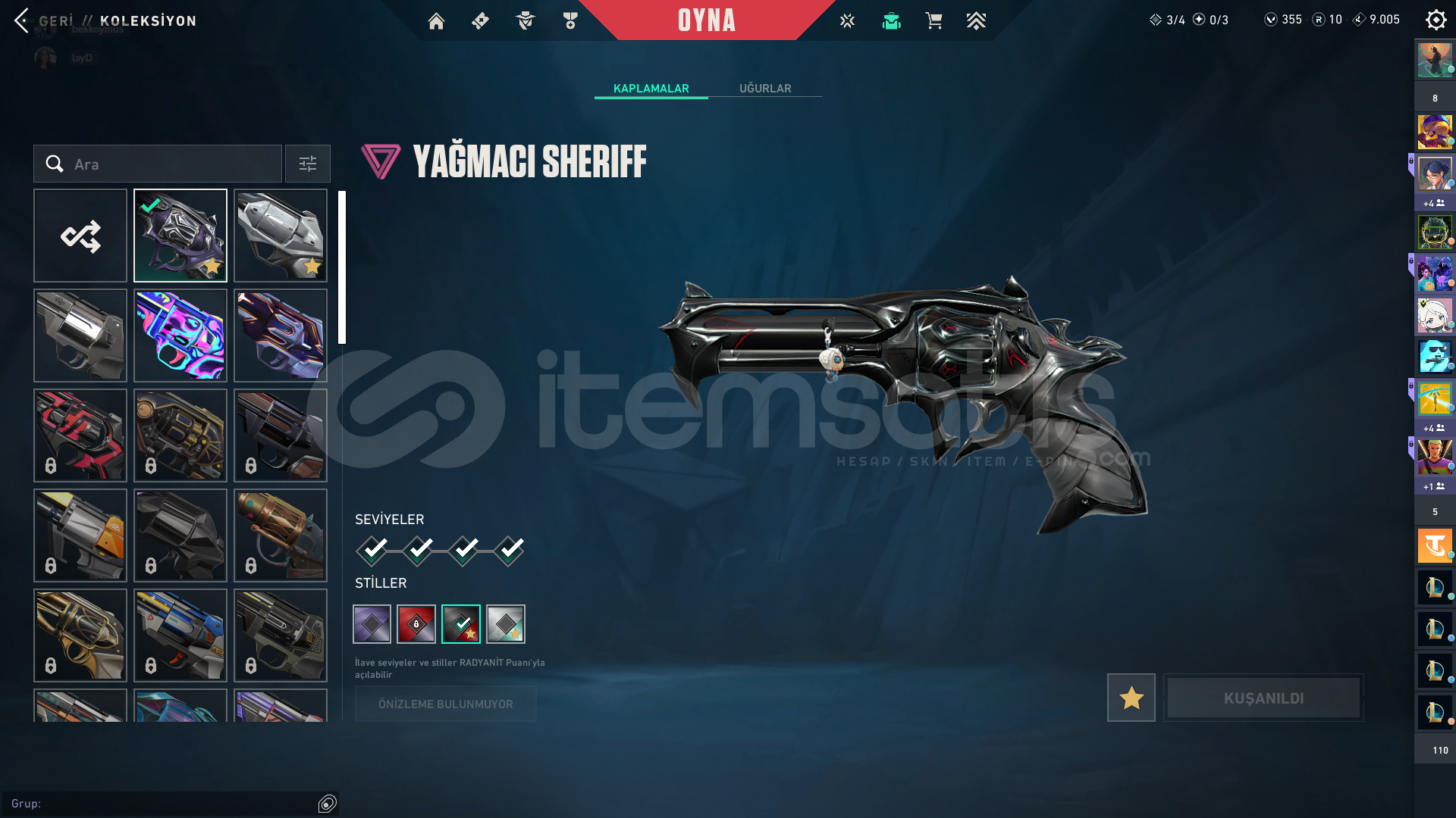 Hesapta oni 2.0 ve faz korucuyu setleri vardır.Onun dışındaki skinler fotoğrafta görünmektedir.Hesabın 2. sahibiyim sorularınız için dm.Cüzi bir miktar pazarlık olur.