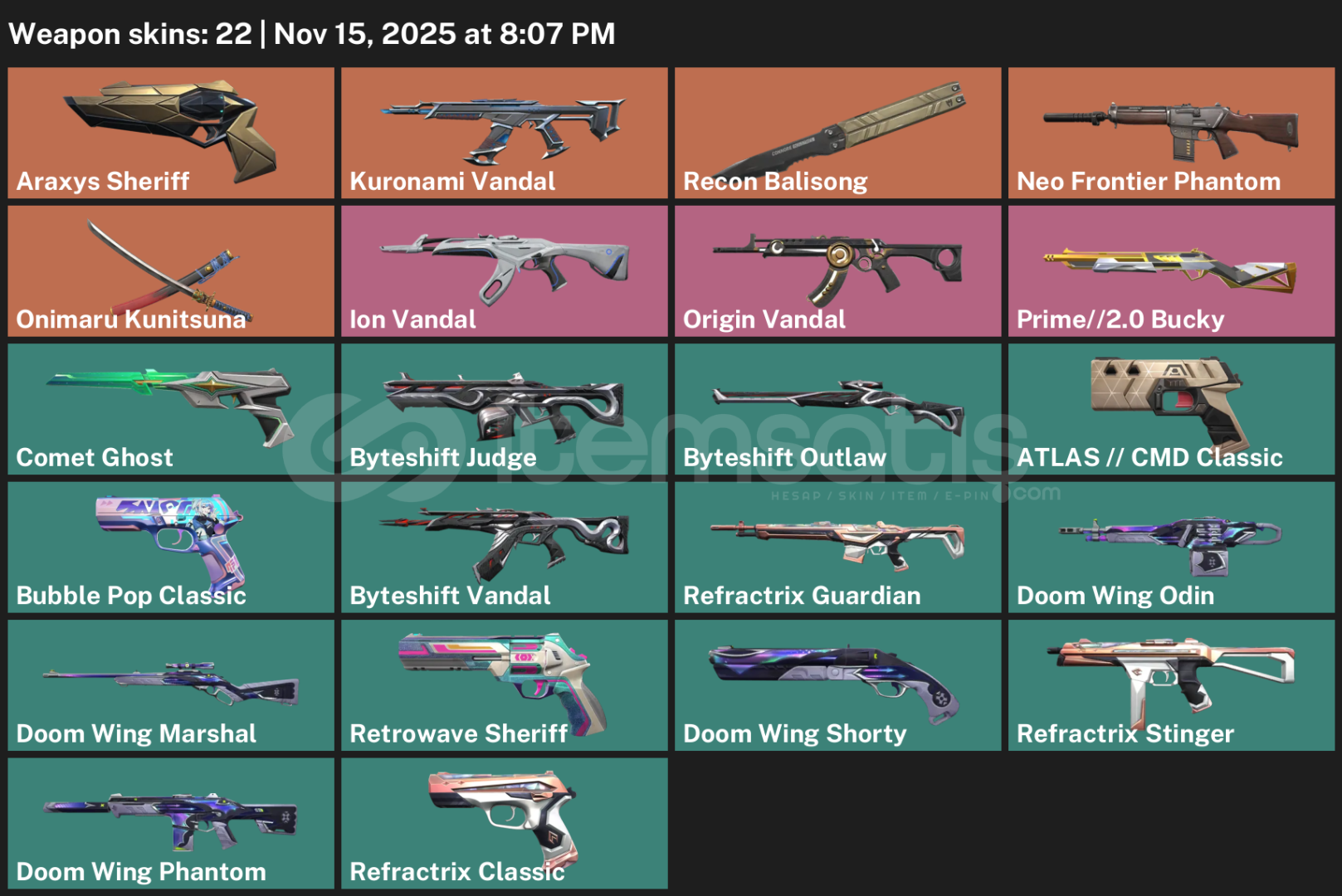 TOPLAM: 22 Skin