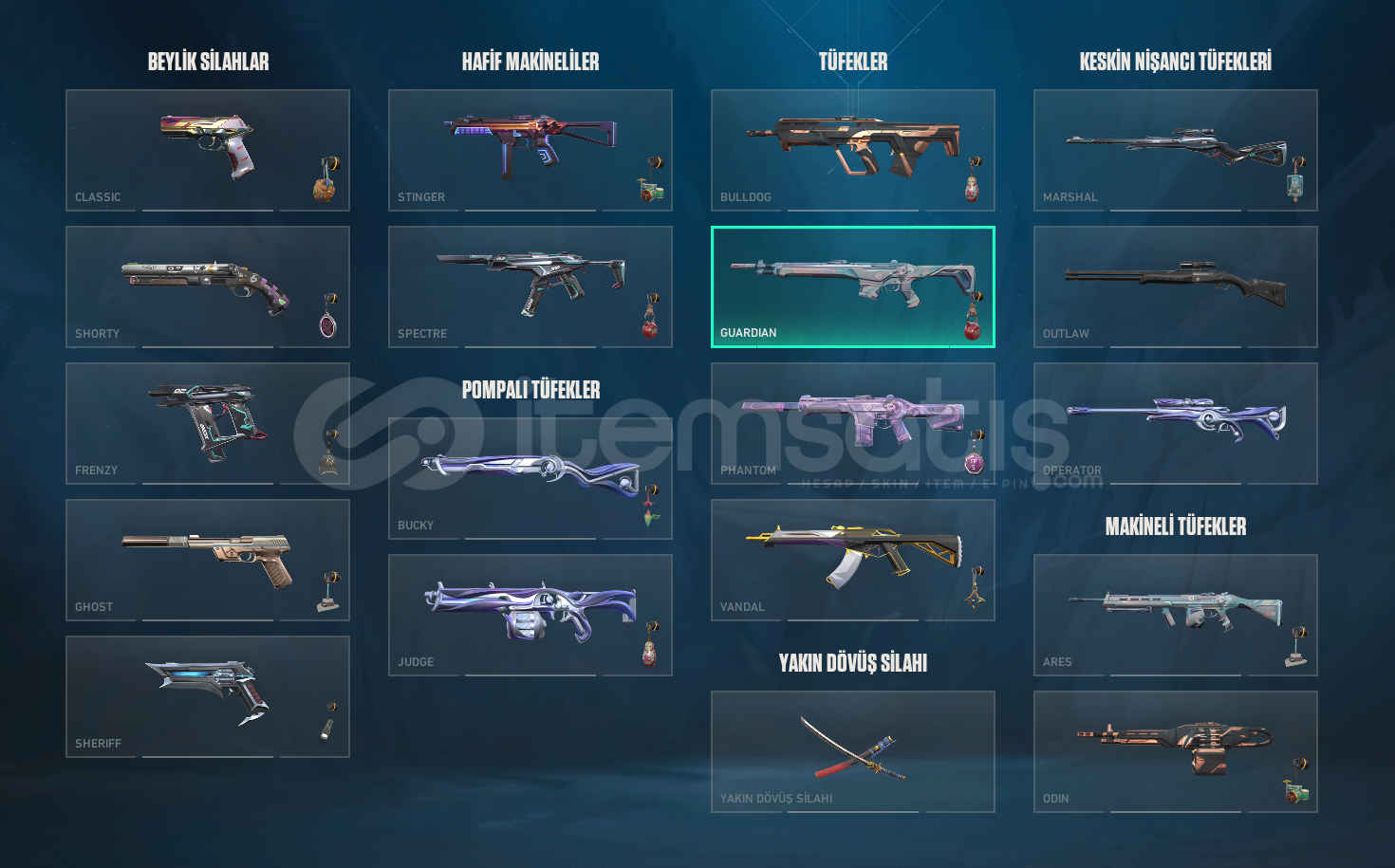 ONİ KATANA + İRİDYUM BIÇAĞI VAR.ASİL VANDAL + ARCANE VANDAL + YILDIZ BELASI VARDIR.KURONOMİ SHERİFF + 3 TANE DAHA SHERİF SKİNİ VARDIR.GÜZEL SKİNLERİ YAZDIM RESİMDE GÖRÜNDÜĞÜ GİBİ BİR ÇOK SKİNİ VARDIR BATTLE PASS .BÜTÜN AJANLAR AÇIKTIR130 LEVEL HESAPRANK PLAT 2 HESAP İÇERİSİNDE (1655 VP VARDIR )ALICISINA HAYIRLI OLSUN Ş&#...