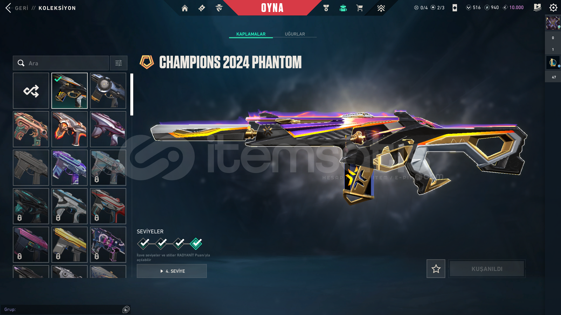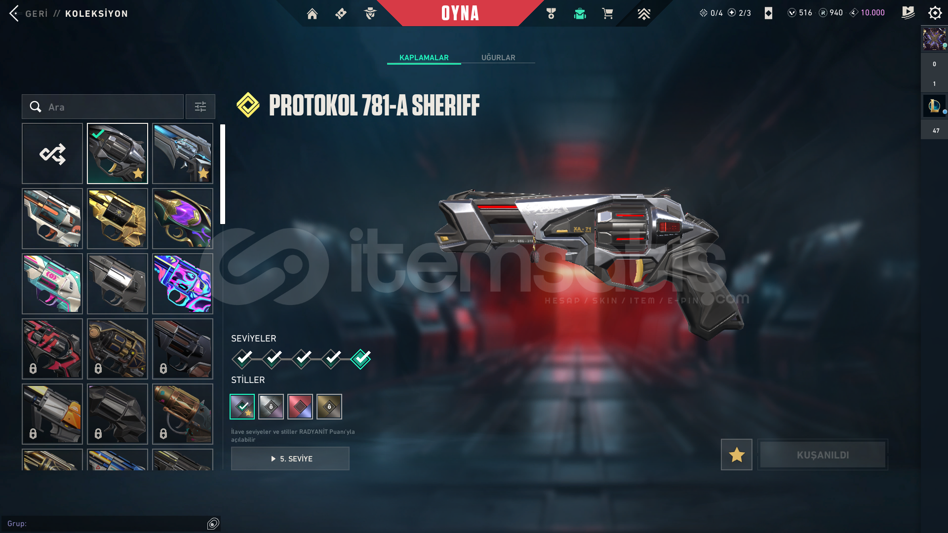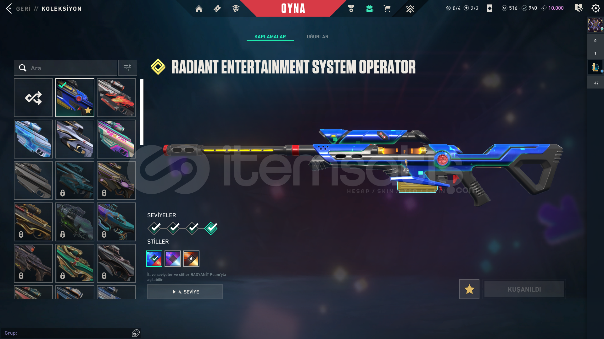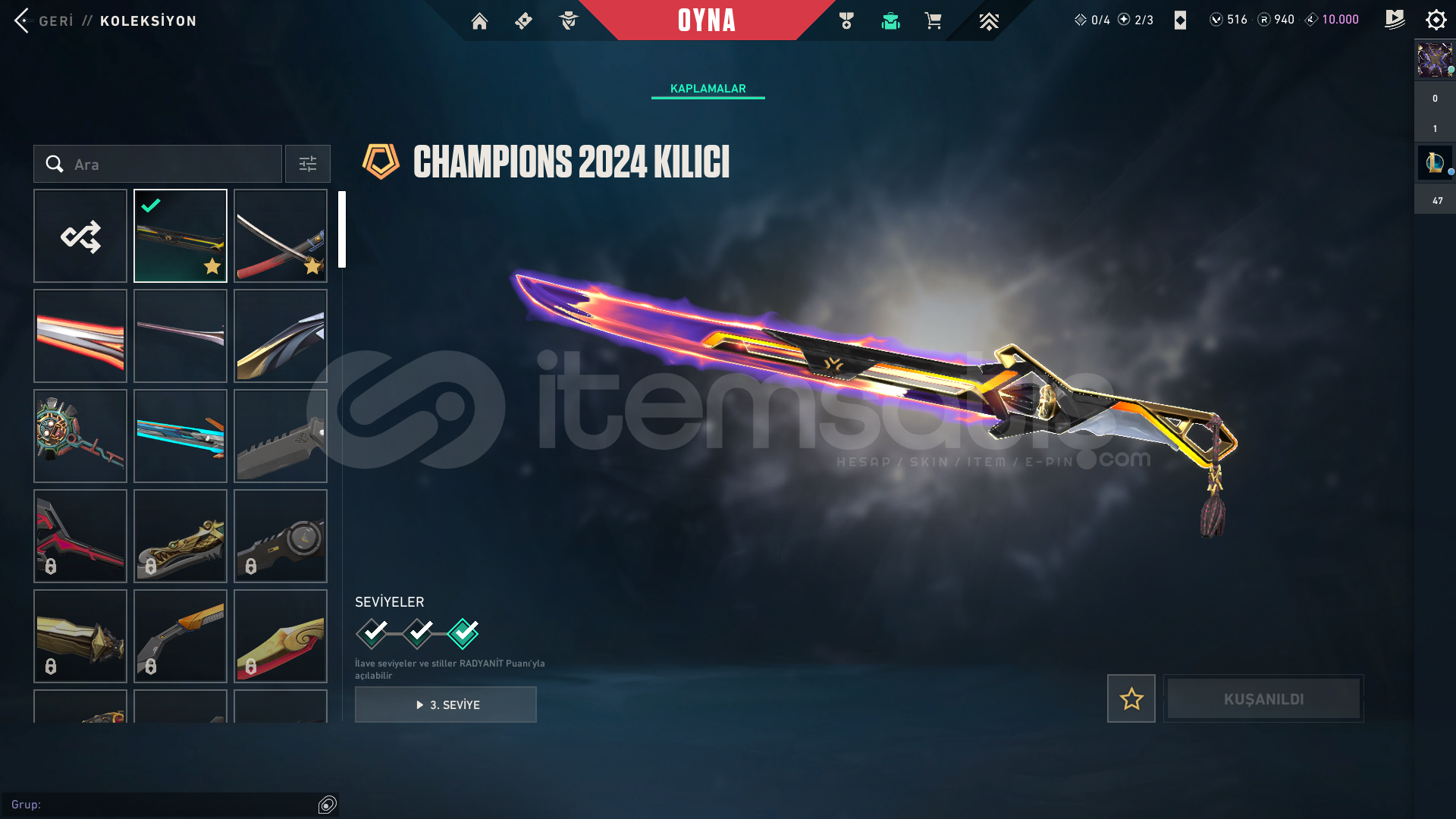 HESABIN İÇİNDEKİ SKİNLER:Radiant Entertainment System OperatorProtocol 781-A SheriffTilde KnifeSingularity SpectreObsidianaInterhelm SwordChampions 2024 BladeOnimaru KunitsunaChampions 2024 PhantomShellspire SwordAraxys BulldogKuronami SheriffOrion SwordReaver GuardianIon VandalNeptune VandalHESABIN BİLGİLERİ, MAİL BİLGİLERİ TESLİM EDİLECEKTİR.ALICISINA HAYIRLI OLSUN.