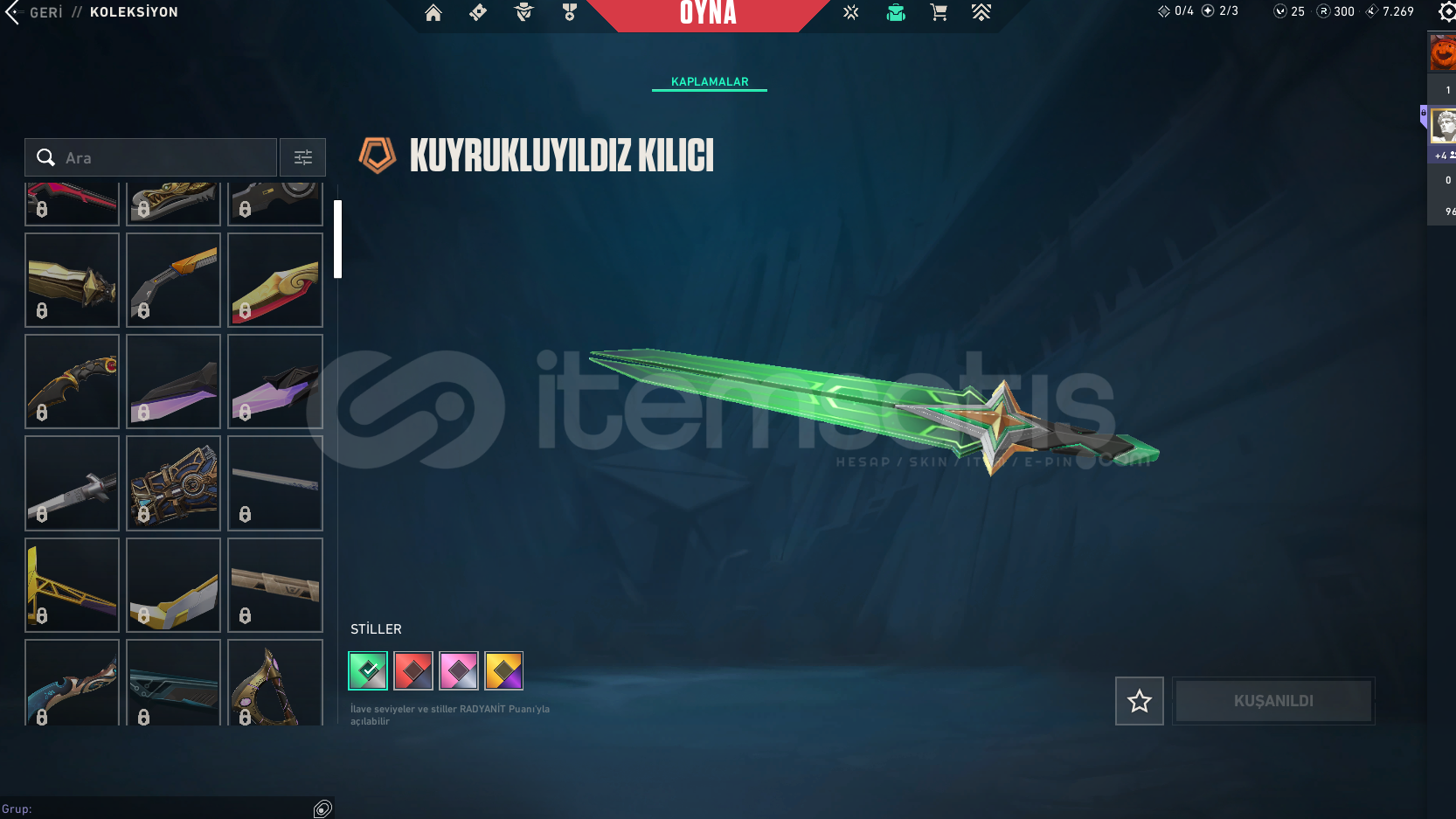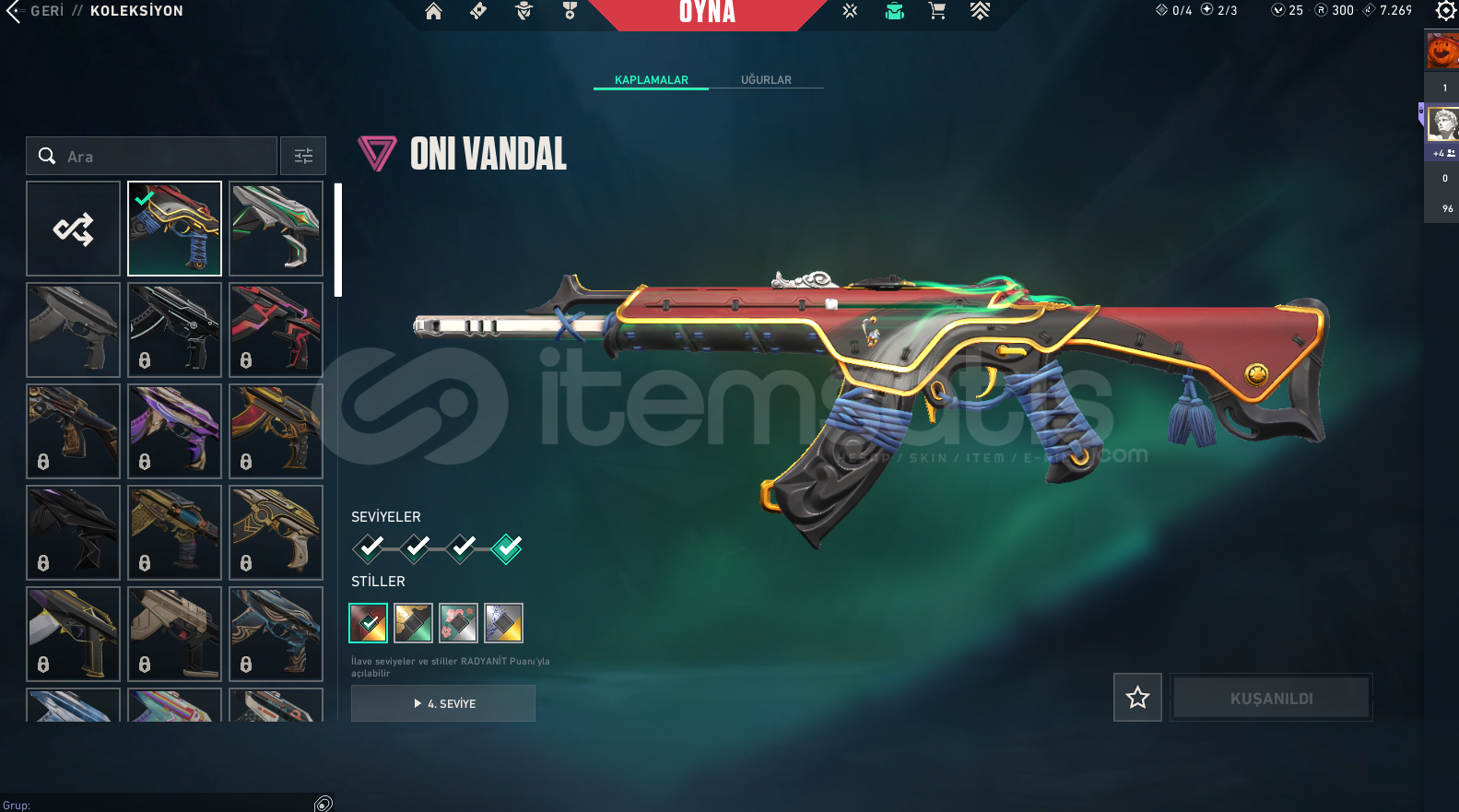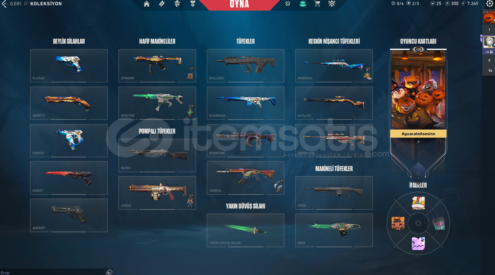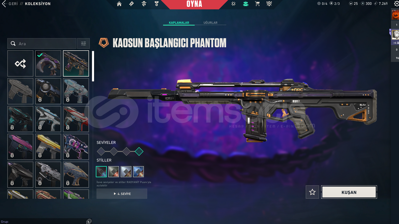 ALACAĞINIZ HESABIN MAİL ŞİFRE TÜM BİLGİLERİ DEĞİŞİR.GÖRSELDE GÖRDÜĞÜNÜZ HESAP TESLİM EDİLECEKTİR.SİLAH RENKLERİNİ SKİN OLARAK SAYMIYORUZ.DİĞER BÜTÇEYE UYGUN İSTEK SKİNLİ İLANLAR İÇİN BİZE ULAŞIN.