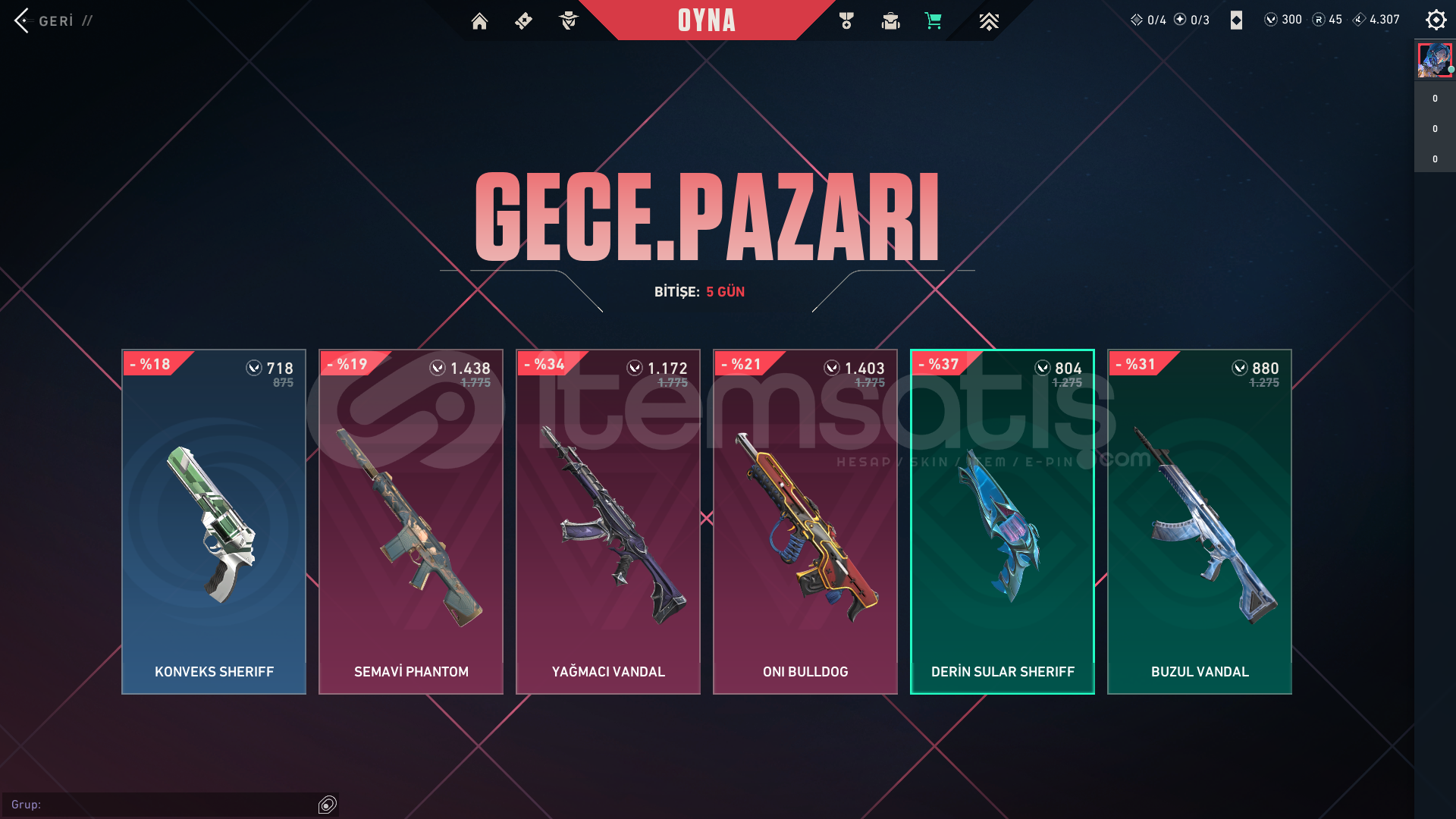 ONİ VANDALLI EFSANA GECE PAZARLI F/P HESAP