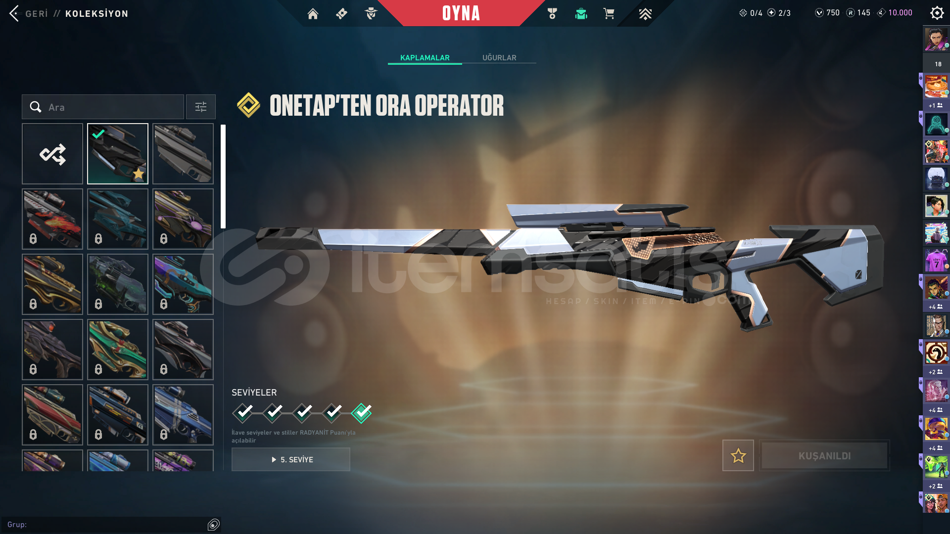 🎯 Hesaptaki Önemli SkinlerORA by OneTap OperatorORA by OneTap VandalORA by OneTap PhantomORA by OneTap SheriffKuronami no YaibaChampions 2025 VandalMystbloom SheriffORA by OneTap KnifeRGX 11z Pro GuardianEvori's SpellcasterPrelude to Chaos PhantomValiant Hero Ghost📦 TeslimatSatın alım sonrası sistem OTOMATİK OLARAK Stoktan bilgileri teslim edecektir.Teslimat formatı: Hesap & Riotgames'e Bağlı Mail-🔒 Güvenlik ve K...