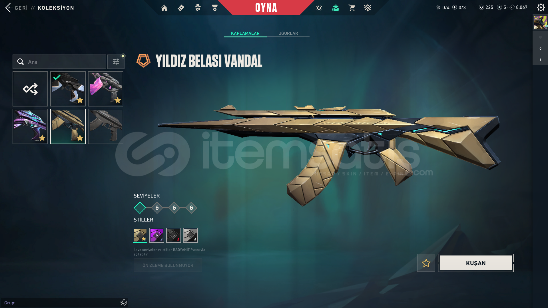 Mail Değişimi YapılacaktırHesap İçeriği:Ora SetSürat canavarı kılıcıiyon Phantomİyon SheriffDolmirin İntikamı VandalYıldız Belası VandalBattle Pass Acık225VPHesap 2 aydır bende derslerimden dolayı oynayamadığım için satıyorum.Elo DerecesizdirMail Değişimi Olucatırİlk Mailine sahip değilim Hesabı başka bir satıcıdan ald&...