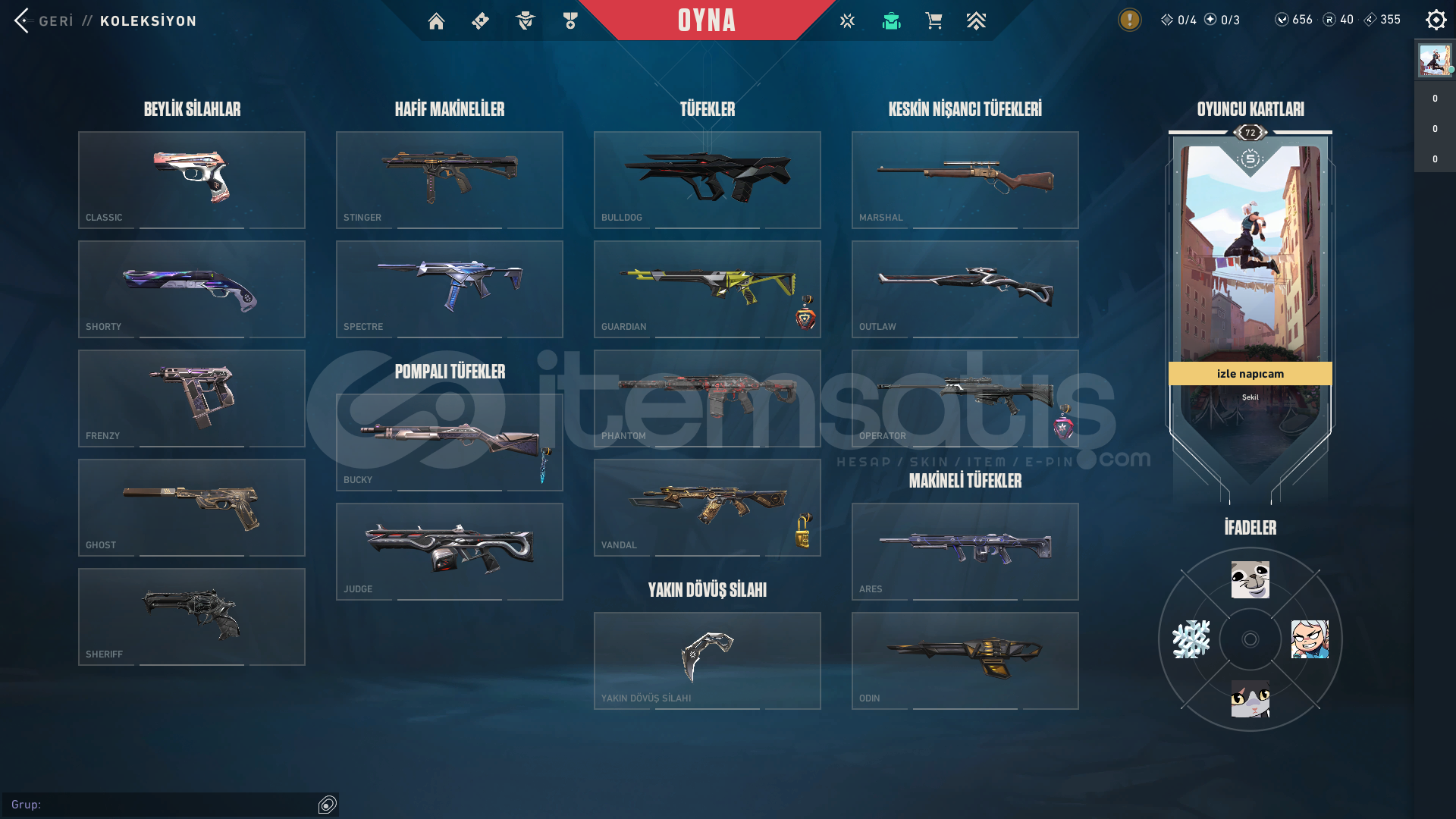 kendi ana hesabım oyundan sıkıldığım ve paraya ihtiyacım olduğundan satılıktır. fotolarda olmayan 34 battle pass skini bulunmakta. hesabı alan kişi herhangi bi sorun yaşamaz ilk maili bende hesabın isterse mailide verebilirim herhangi bi sorun yaşarsada elimden geleni yaparım. hesapta artıdan 650 vp bulunmakta simdiye kadar 8.5k gibi bi para yatırıldı.