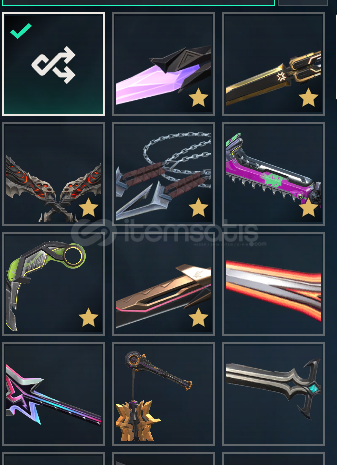 kuronami , champions vandal Spectrum guardian seri tetik marshal seri tetik odin oni ares spectrum classic afet , radiant ghost asil frenzy neptün shorty kaos bulldog kaos , yitik spectre kaos , ışık muhafızı phantom Exo outlaw kuronami , ponçik ecel , ulupençe , felaketin bıçakları , rgx 11z karambit , kaos gürzü , mahvolmuş kralın kırık kılıcı , champions 25 kelebek , anomali kelebek b...