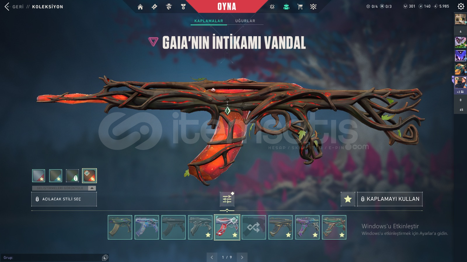 Vandal skinleri ;GaiaDelipopEjderin buyruğuFatih - YitikCesur yürekPhantom skinleri ;GaiaÖzel HarekatBıçak skinleri ;Rgx Karambit Uzaylı Avcısı
