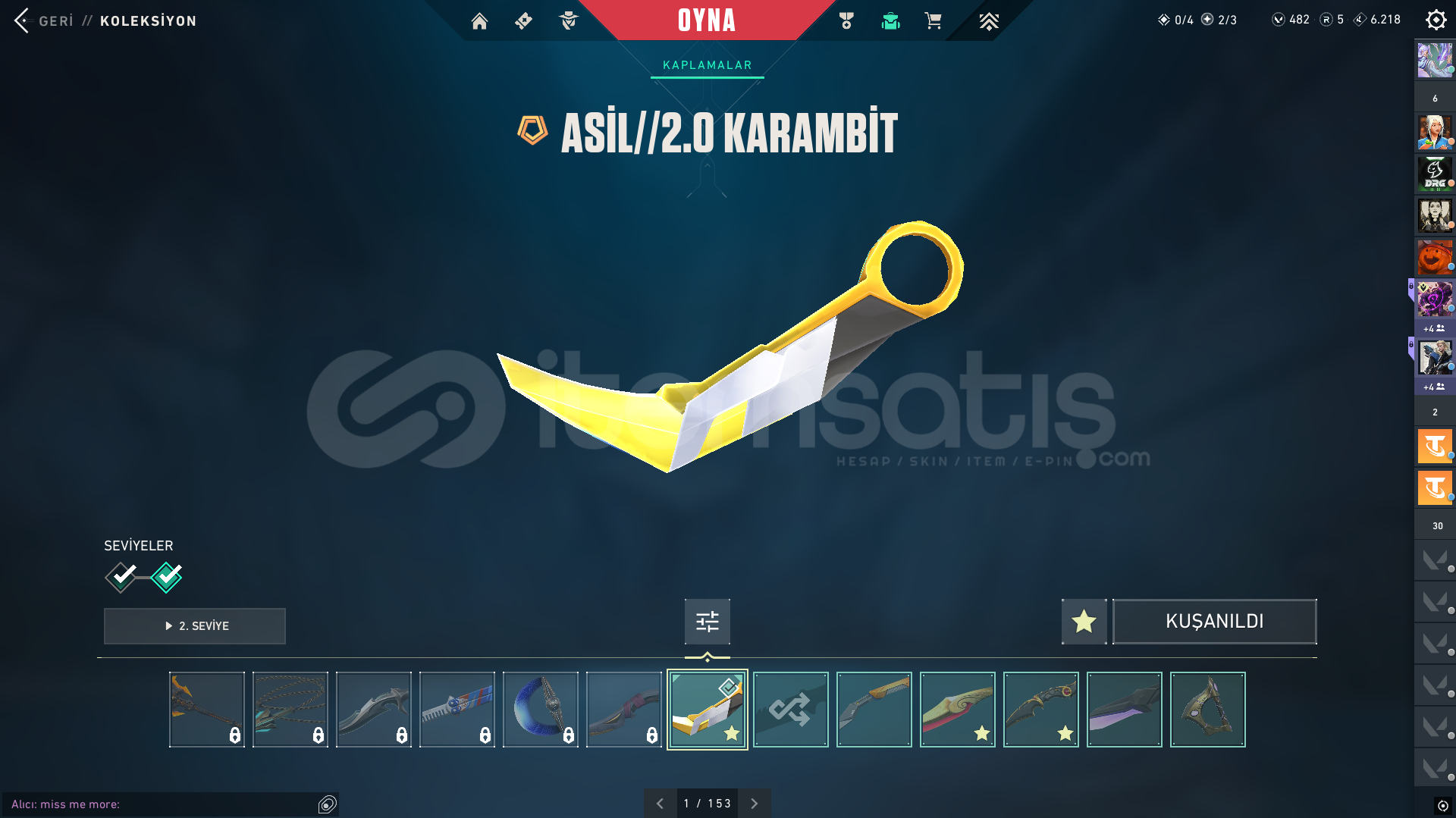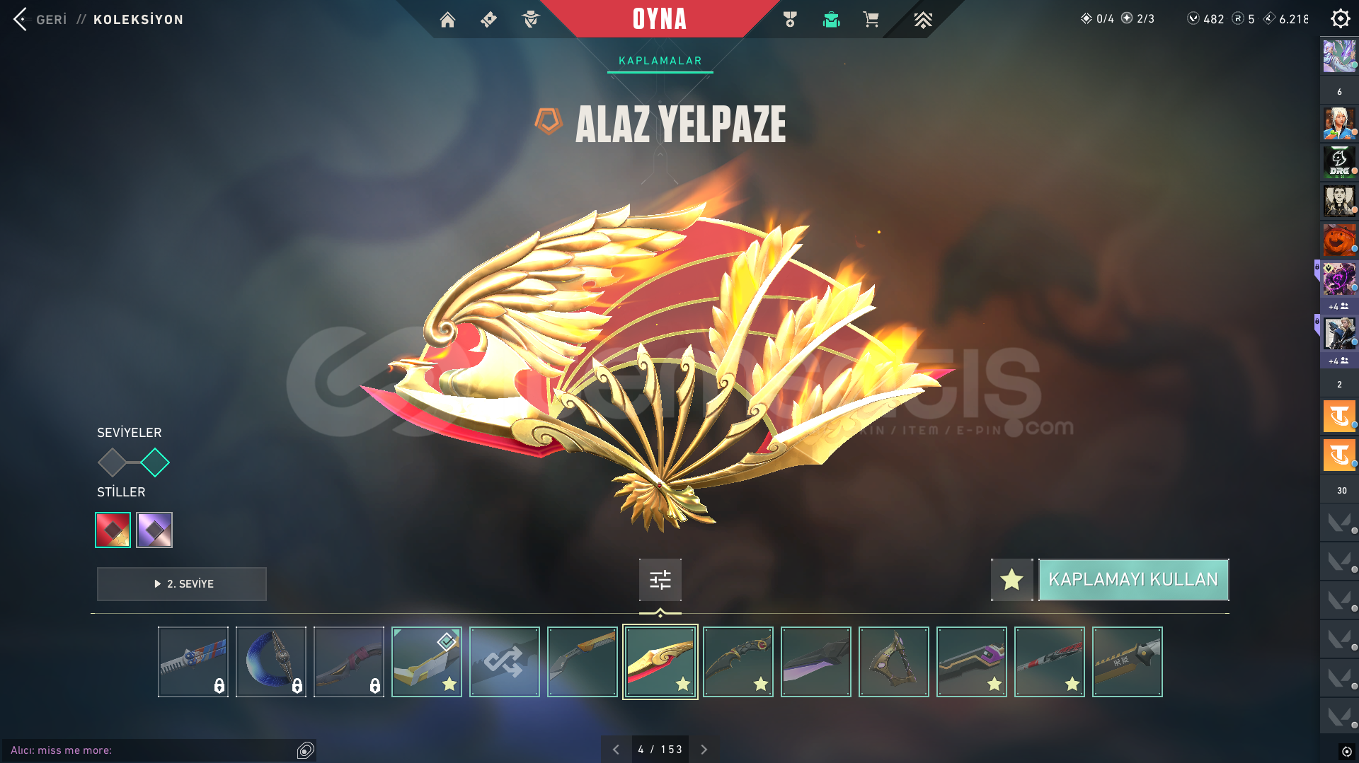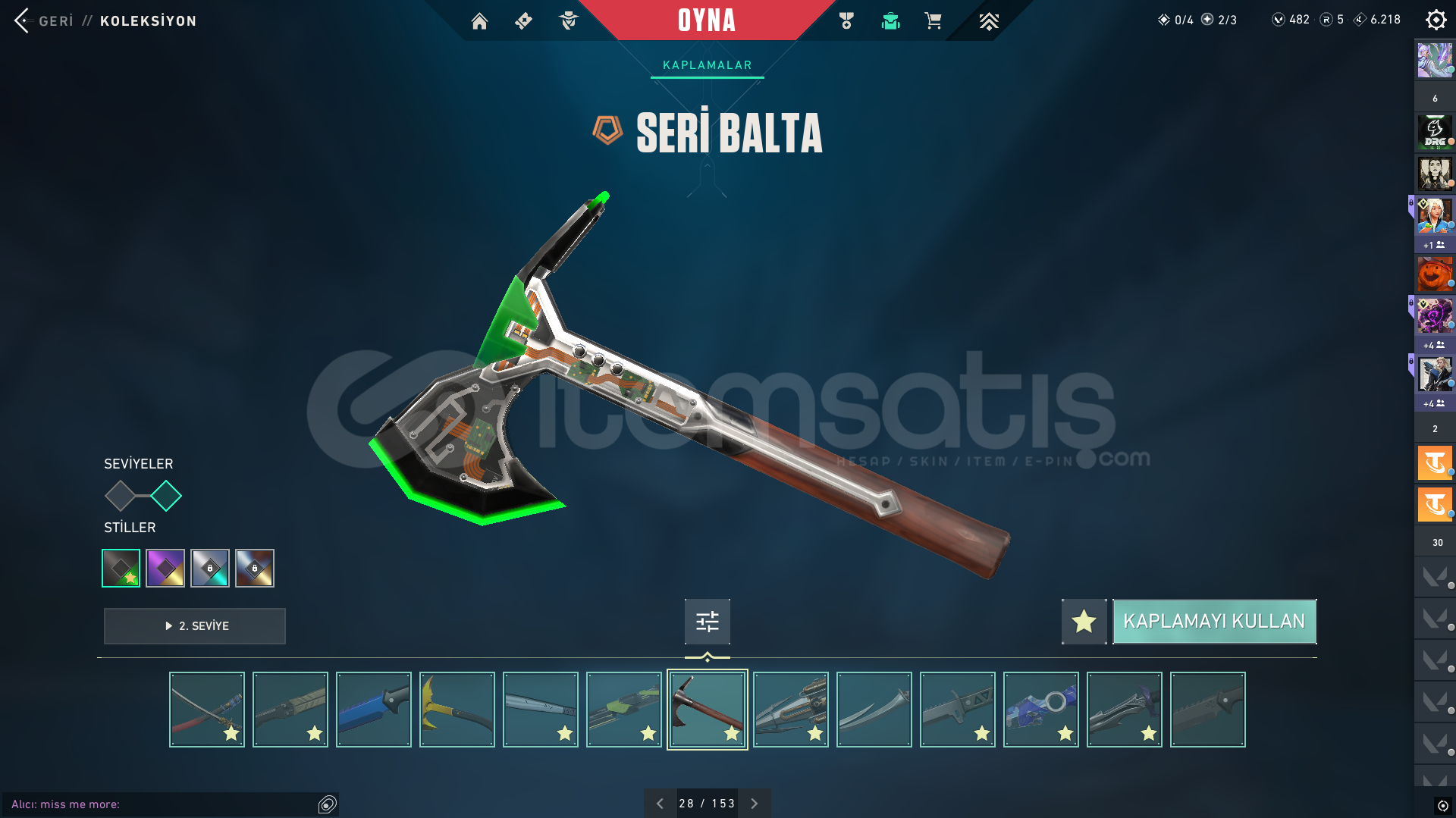 son fotoğrafta genel skinlerin bulunduğu ekran görüntüsü de vardır.