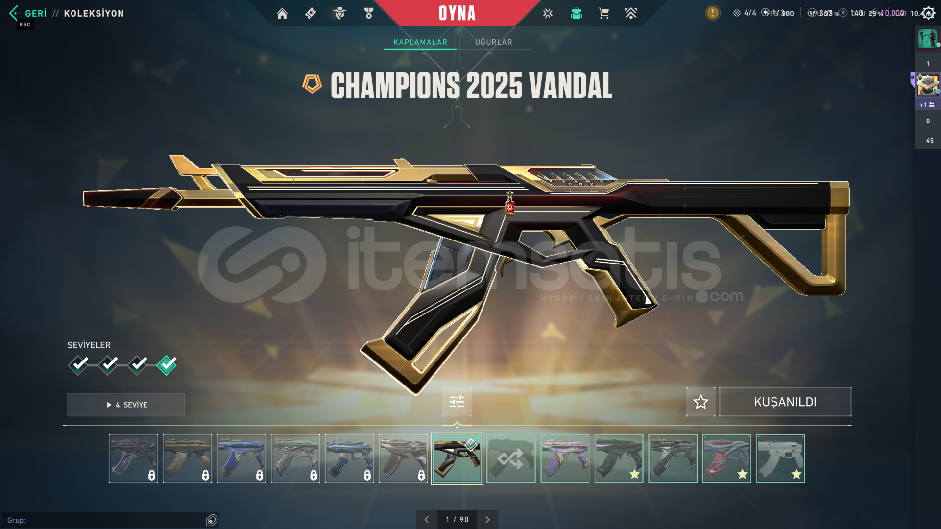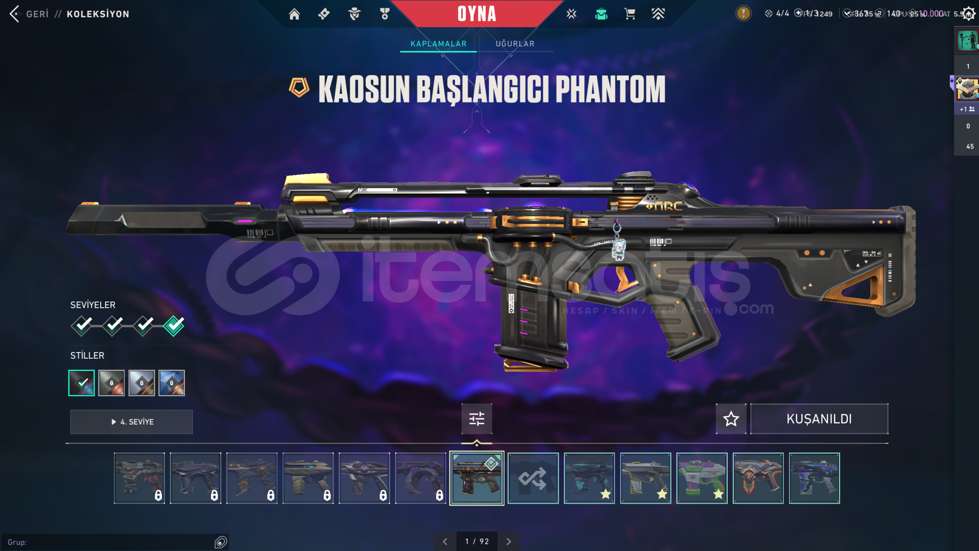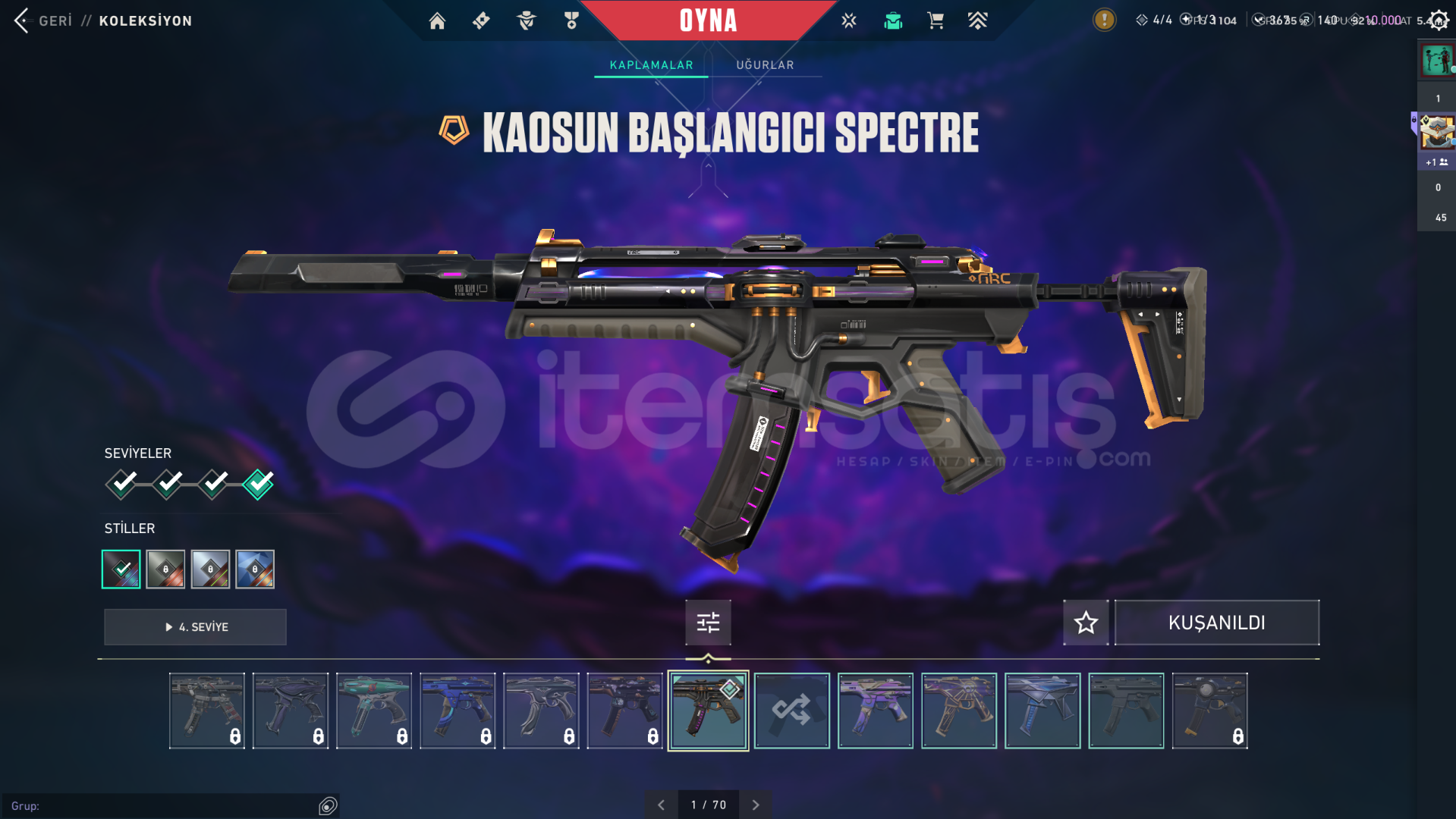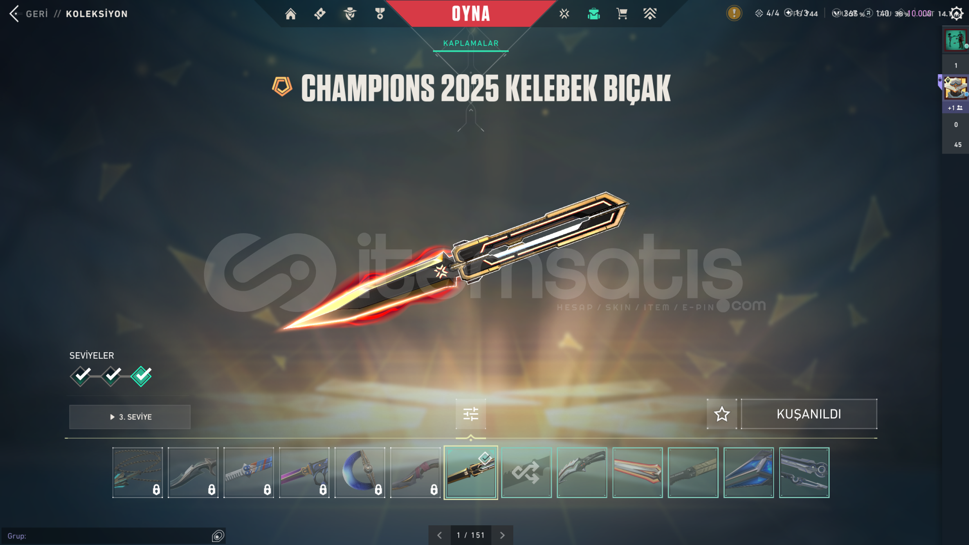 Hesapta Champions 2025 set, kaos 2.0 phantom ve spectre, özel harekat kelebek, valorant go 1.cilt bıçak bulunmaktadır. Oyunu bıraktığım için satıyorum. Rank bronzdur. 45 arkadaşı bulunuyor hesabın.