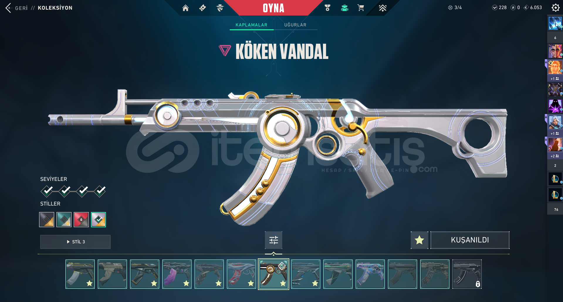 HESAP SEVİYESİ: 135RANK: GÜMÜŞ 1 (SİLVER 1)KİNGDOM KREDİSİ: 6053RADYANİT: 0VP: 228CLASSICLERPOPSTAR CLASSICATLAS // KMT CLASSICGALAKSİ MUHAFIZI CLASSICTAKTİ-SERİ CLASSICTORK CLASSICYOONSEUL CLASSICSHORTYLERYILDIZ BELASI SHORTYKALP AVCISI SHORTYSEMADOKUYAN SHORTYSÜKÜNET SHORTYFRENZYLERHALOFORM FRENZYAHENK FRENZYAYKIRI FRENZYTAKTİ-SERİ FRENZYGHOSTLARULUPENÇE GHOSTALBENİ GHOSTFREKANS GHOSTKUYRUKLUYILDIZ...