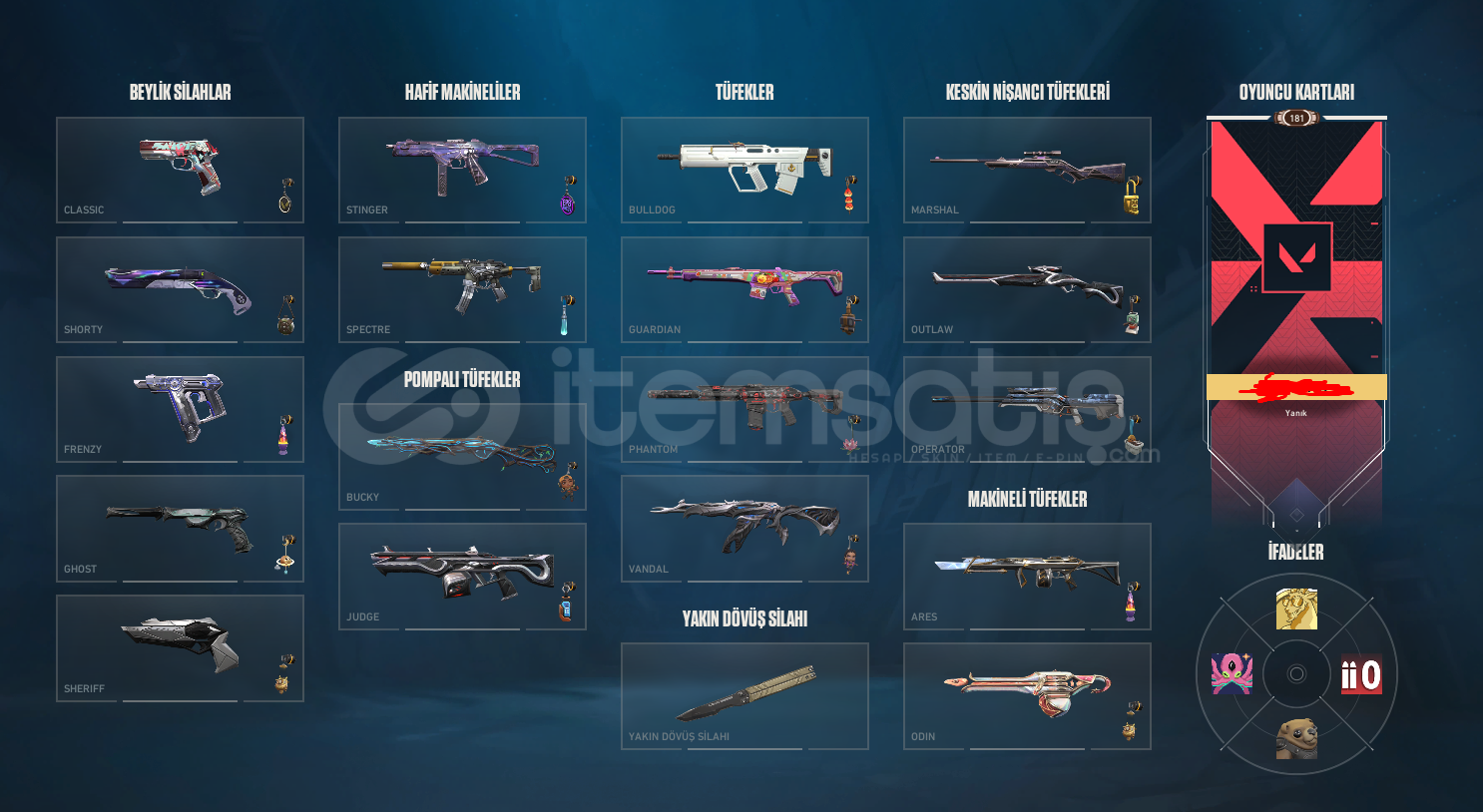 Hesabım tertemizdir, içerdiği değerli skinler;FELAKETİN KALBİ VANDALDOLMIR'IN İNTİKAMİ VANDALKAOSUN BAŞLANGICI VANDALÖZEL HAREKAT PHANTOMDELİPOP PHANTOMYILDIZ BELASİ SHERİFFYAĞMACI GHOSTNEPTÜN BULLDOGEVORİ ODİNHESAP KENDİ MAİLİNİZİN ÜSTÜNE YAPILACAKTIR ALIM ESNASINDA DA ALIM SONRASINDA DA HER TÜRLÜ 7/24 DESTEK SAĞLANIR