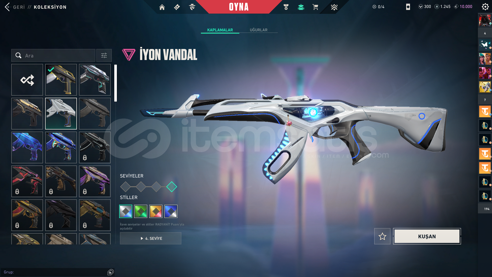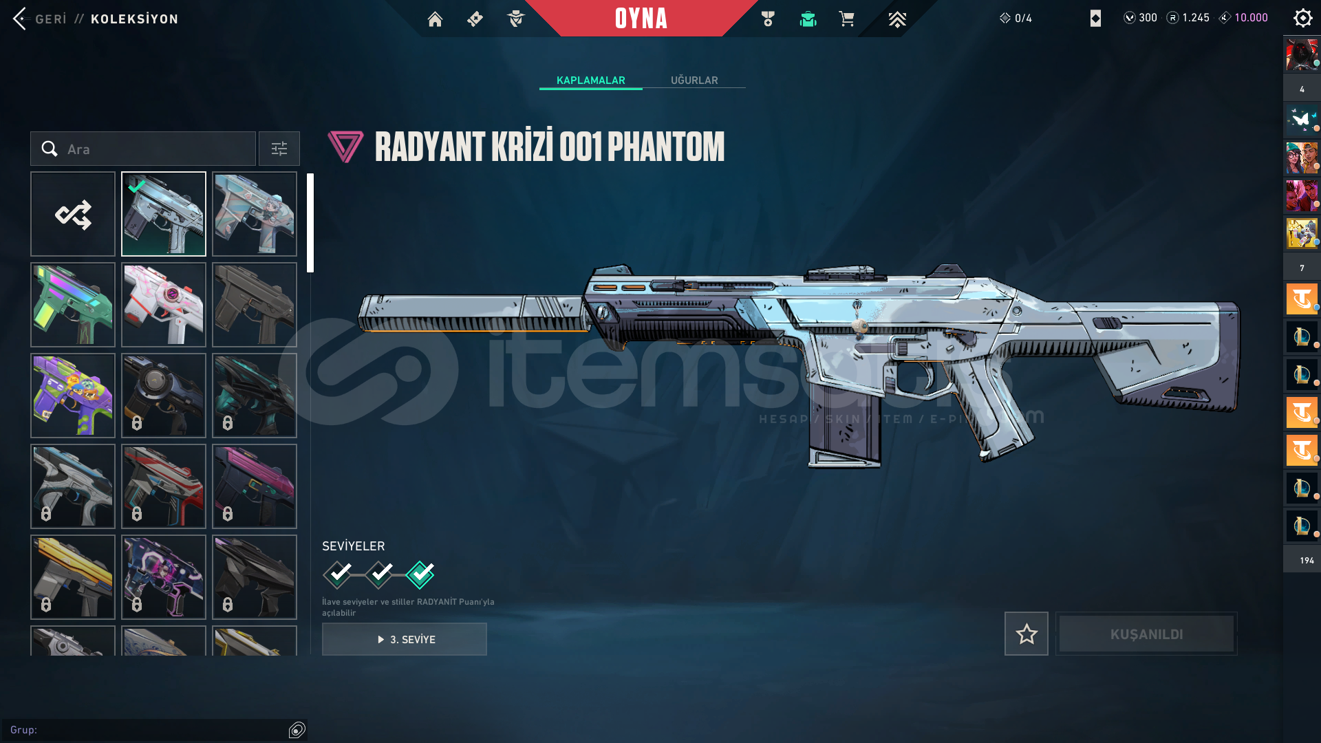 🎯 Hesaptaki Önemli SkinlerRecon BalisongVenturi KnifeSpectrum PhantomWonderstallion HammerSongsteelGuardrail HammerIridian Thorn BladeRadiant Crisis 001 PhantomIon VandalPrime Vandal📦 TeslimatSatın alım sonrası sistem OTOMATİK OLARAK Stoktan bilgileri teslim edecektir.Teslimat formatı: Hesap & Riotgames'e Bağlı Mail-🔒 Güvenlik ve KontrollerSatışa sunulan her hesap, paylaşılmadan önce deta...