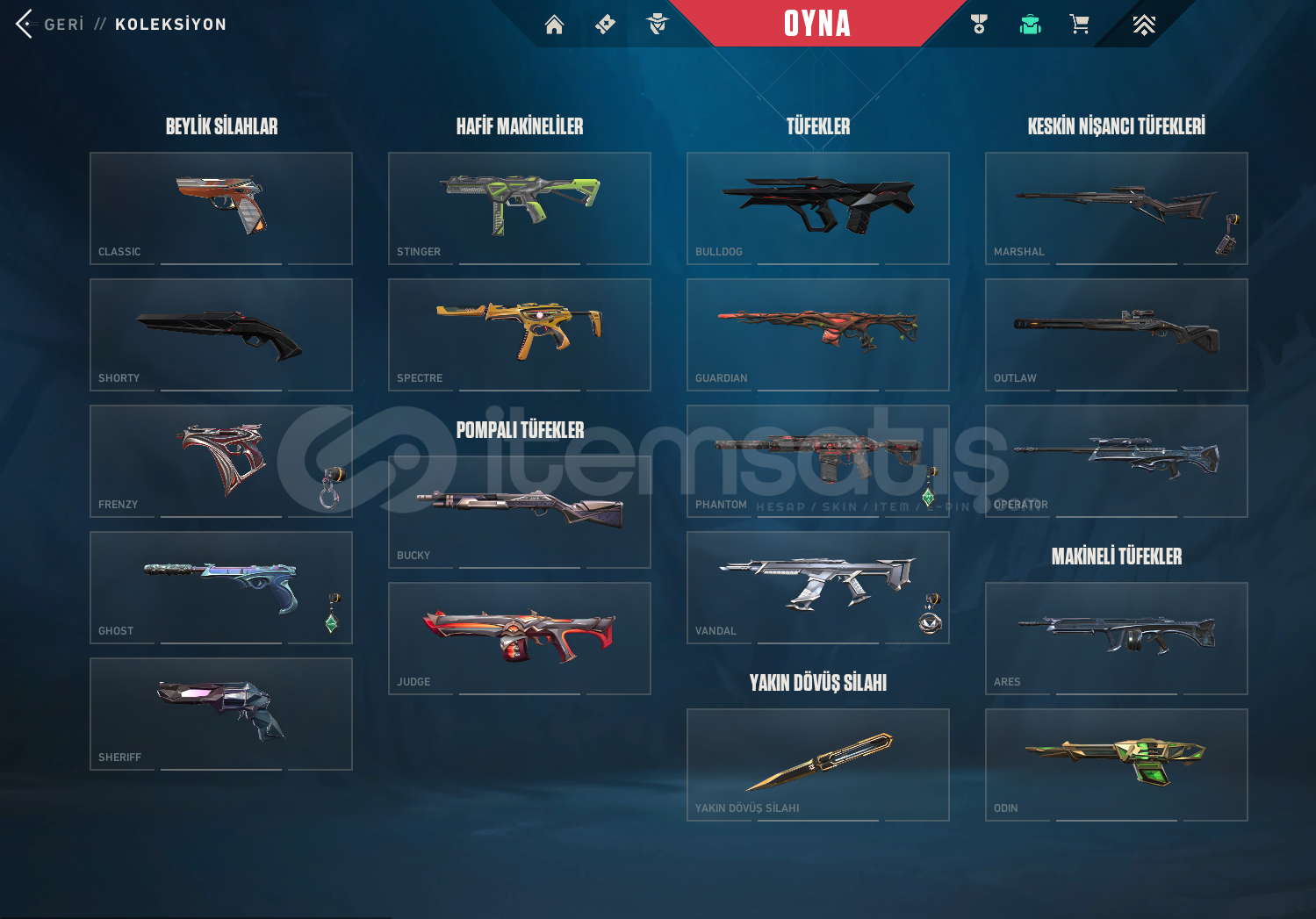 (OPERATOR, CLASSIC, GHOST, SHERRİF, GUARDIAN SİLAHLARINDA FAZLADAN SKINLER VARDIR.)
