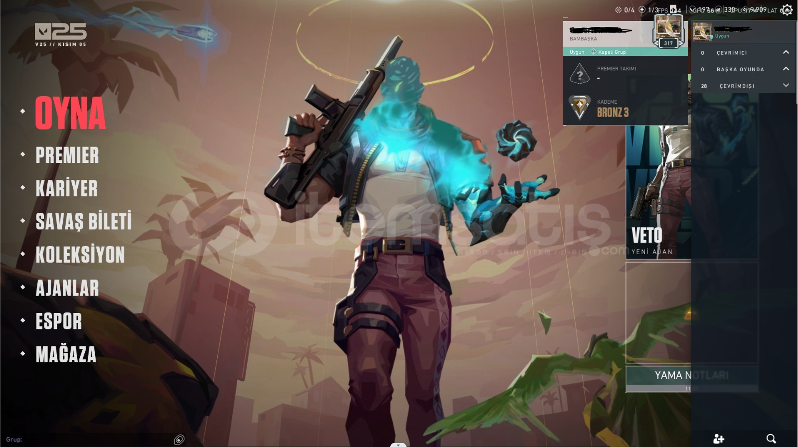 🎮 Valorant Hesap Bilgileri🔹 Rank: Bronz 3 🔹 Level: 316 🔹 Battlepass: 3 adet açılmış✨ Öne Çıkan Skinler:Anomali GhostYağmacı SheriffAsil SpectreDeliPop PhantomChampions 2024 PhantomYağmacı VandalYitik VandalAsil VandalUlupence VandalYağmacı OperatörAsil V2 KarambitIşık Muhafızı Yadigârı Bıçak Hesap hakkında sorunuz varsa sorabılı...