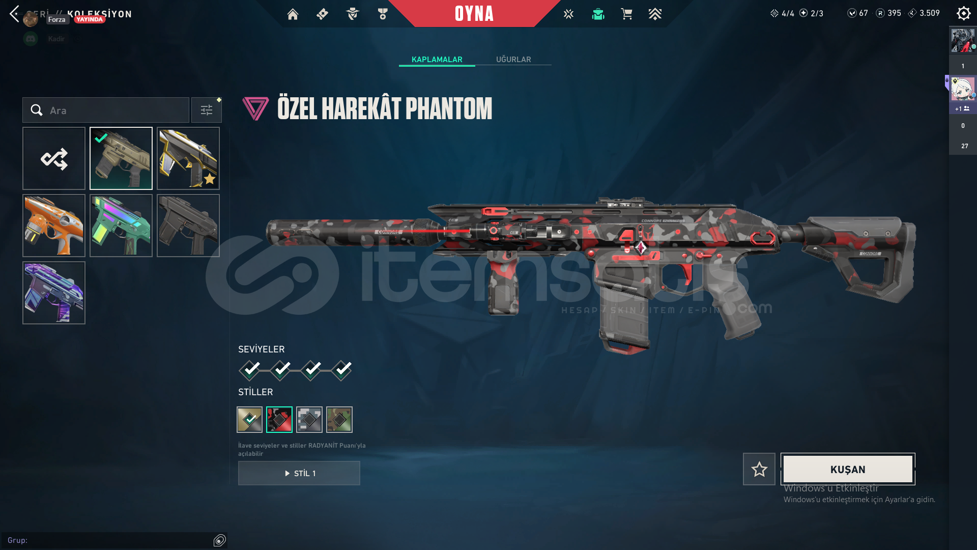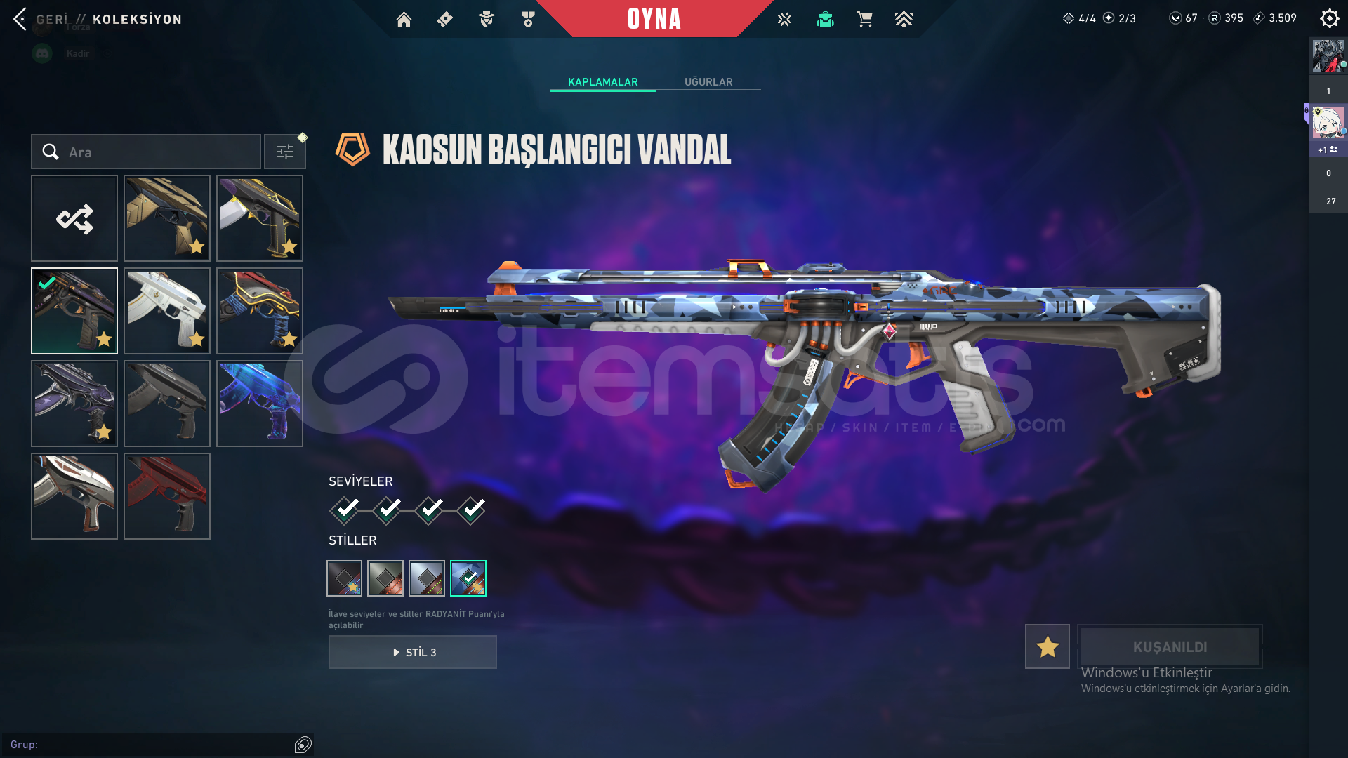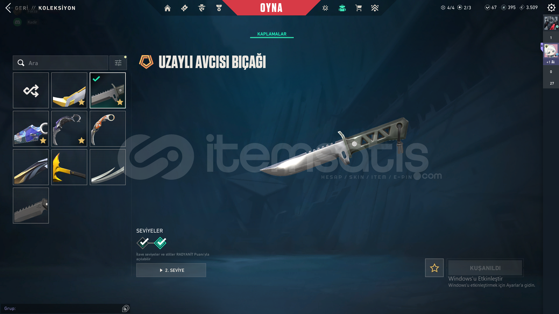 Hesap eski İmmo dur Uğurluk bulunmaktadırVandal : Kaos , Asil , Yağmacı , Neptün , Yıldız Belası , OniPhantom : Asil 2.0 , Özel HarekatSpectre : AsilClassic : Yerçekimsel UranyumFrenzy : KökenGhost : FatihSheriff : AnomaliBıçaklar : Asil 2.0 Karambit , Yağmacı Karambit , Uzaylı Avcısı , Valorant Go 1 Cilt BIçakOperator : Yitik , Yağmacı