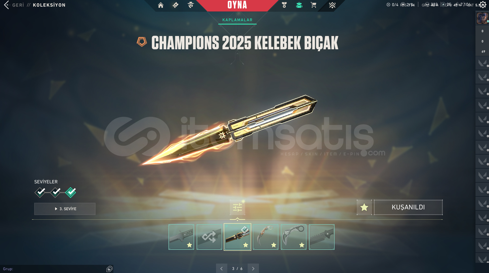 • Skinler: Champions 2025 Vandal - Prime Vandal - Primordium Vandal / Oni Phantom / Ion Operator / Nocturnum Classic / Champions 2025 Butterfly Knife - Ion Karambit - Xenohunter Knife - Velocity Karambit VE DAHA SAYAMADIKLARIM İLE BİRLİKTE TOPLAM 26 SKİN MEVCUTTUR.