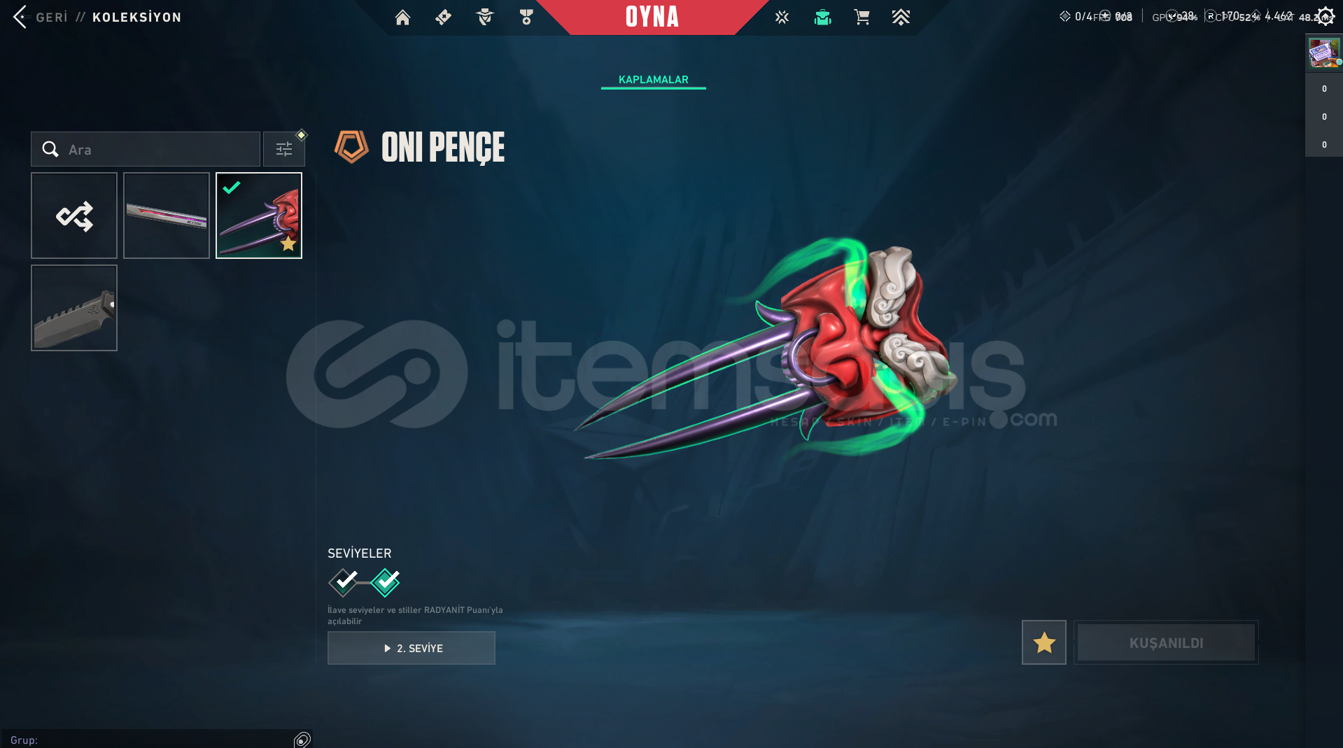 • Skinler: Reaver Vandal / Singularity Phantom - Oni Phantom - Prime//2.0 Phantom / Ion Operator / Ion Sheriff / Glitchpop Classic / Glitchpop Bulldog / Oni Claw - K/TAC Blade VE DAHA SAYAMADIKLARIM İLE BİRLİKTE TOPLAM 33 SKİN MEVCUTTUR.