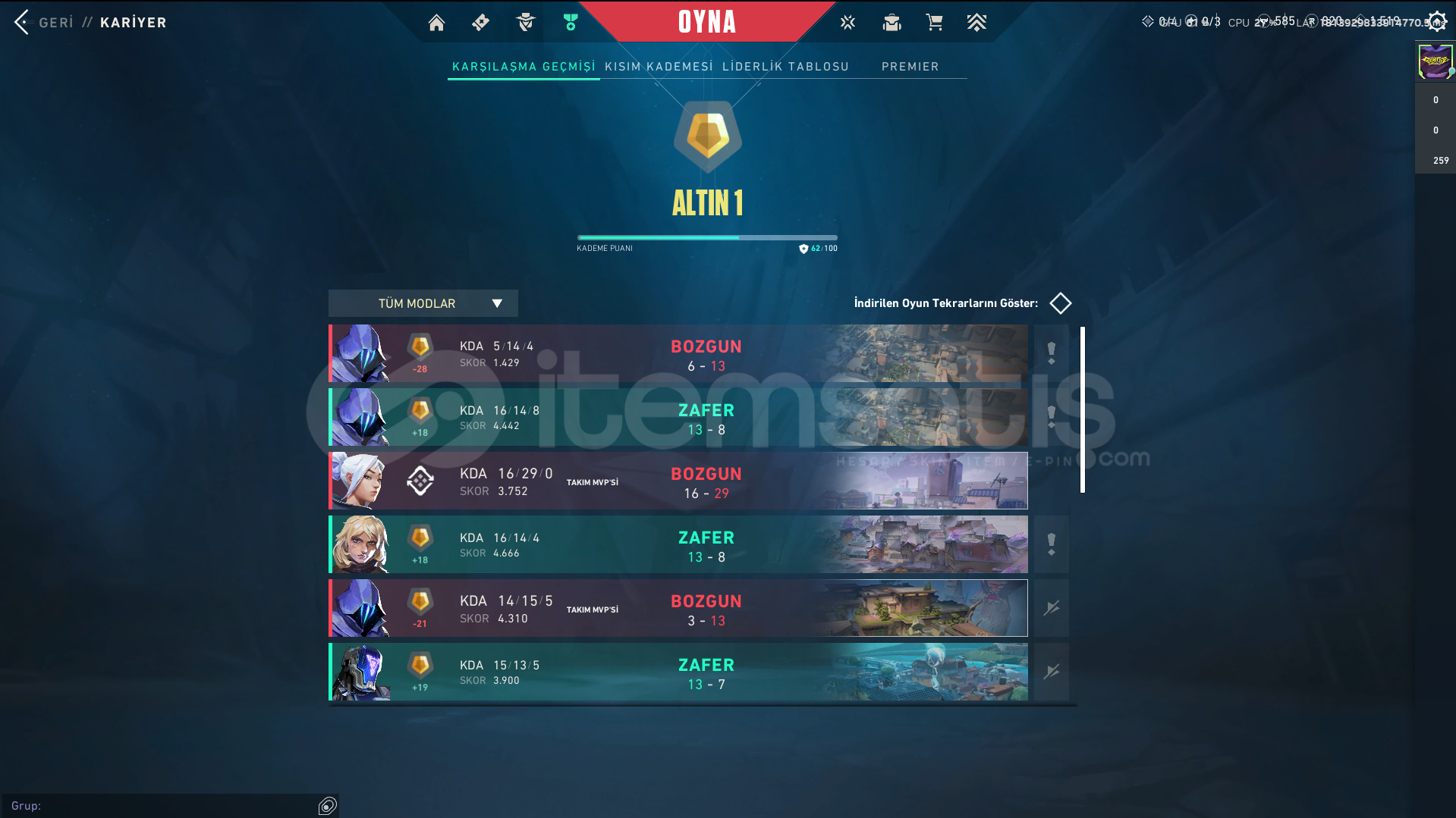 Srisee'den OKUL fırsatı❤️Srisee - Birbirinden Şık Skinlerle Donatılmış Hesap!Hesap Detayları:Derece: ALTIN 1Seviye: 296Ajanlar: Neon - Breach - Viper - Raze - Harbor - Skye - Fade - Chamber - Yoru - KAY/O - Omen - Astra - Cypher - Reyna - Gekko - KilljoySkinler: Sentinels of Light Vandal - EX.O Vandal / Nocturnum Phantom - RGX 11z Pro Phantom / EX.O Spectre / VCT x M8 Classic VE DAHA SAYAMADIKLARIM İLE BİRLİKTE TOPLAM 34 SK...