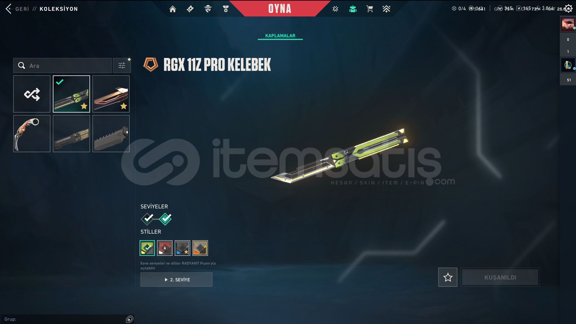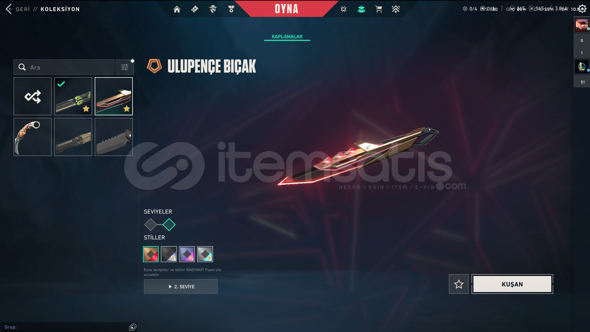 • Skinler: Glitchpop Vandal - Kuronami Vandal - XERØFANG Vandal / Undercity Phantom - Singularity Phantom - Mystbloom Phantom - Primordium Phantom - Glitchpop Phantom / Glitchpop Classic / XERØFANG Ghost / Recon Balisong - Velocity Karambit - XERØFANG Knife - RGX 11z Pro Firefly VE DAHA SAYAMADIKLARIM İLE BİRLİKTE TOPLAM 39 SKİN MEVCUTTUR.