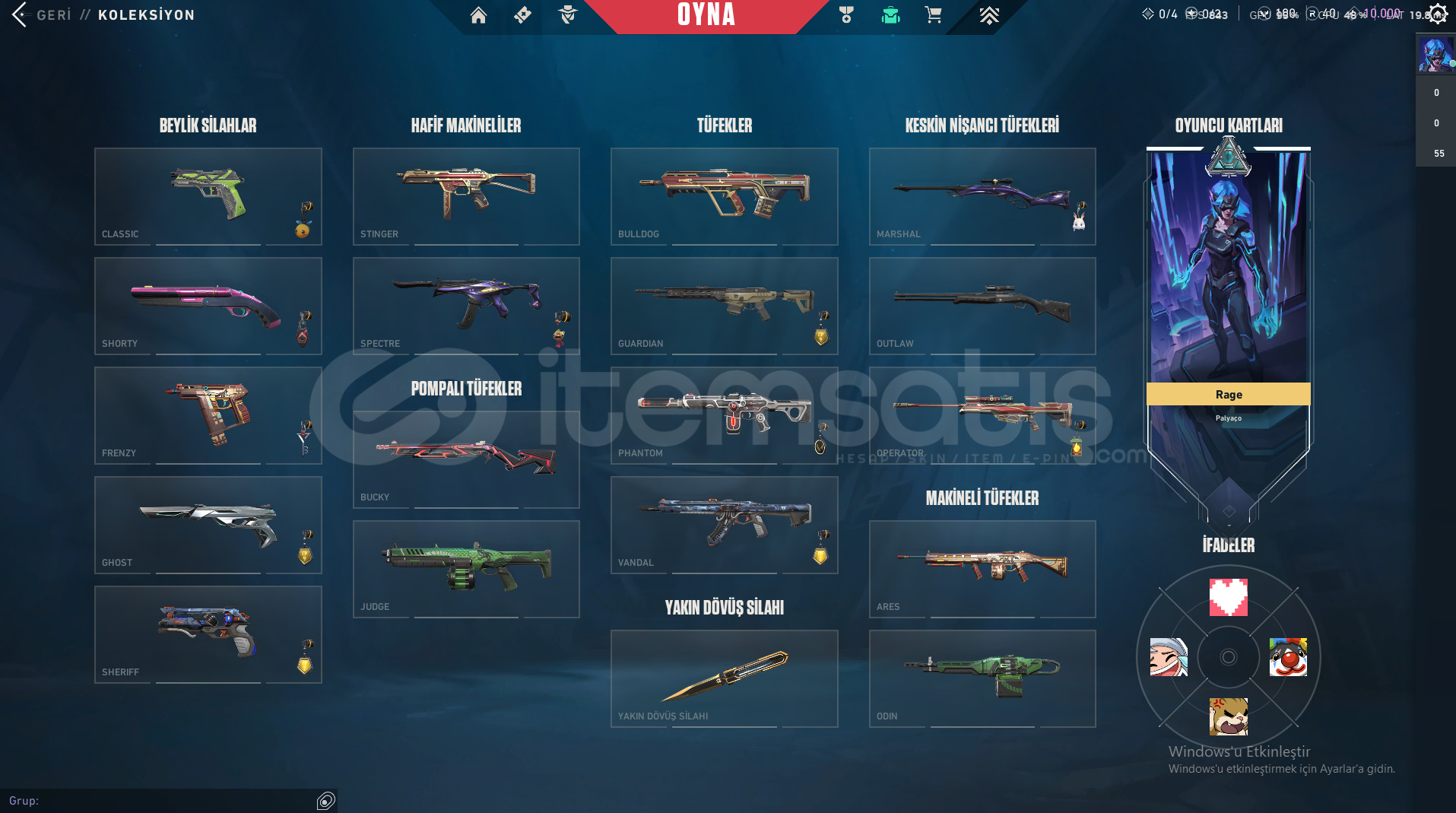 Srisee'den OKUL fırsatı❤️Srisee - Birbirinden Şık Skinlerle Donatılmış Hesap!Hesap Detayları:Derece: PLATİNUM 2Seviye: 173Ajanlar: Reyna - Neon - KAY/O - Breach - Clove - Viper - Deadlock - Fade - Astra - Harbor - Chamber - Omen - Yoru - Cypher - Gekko - Skye - Iso - Raze - KilljoySkinler: Arcane Vandal - Prelude to Chaos Vandal - Araxys Vandal - EX.O Vandal - Aemondir Vandal - Neptune Vandal - Reaver Vandal / Magepunk Phantom / Recon Gu...