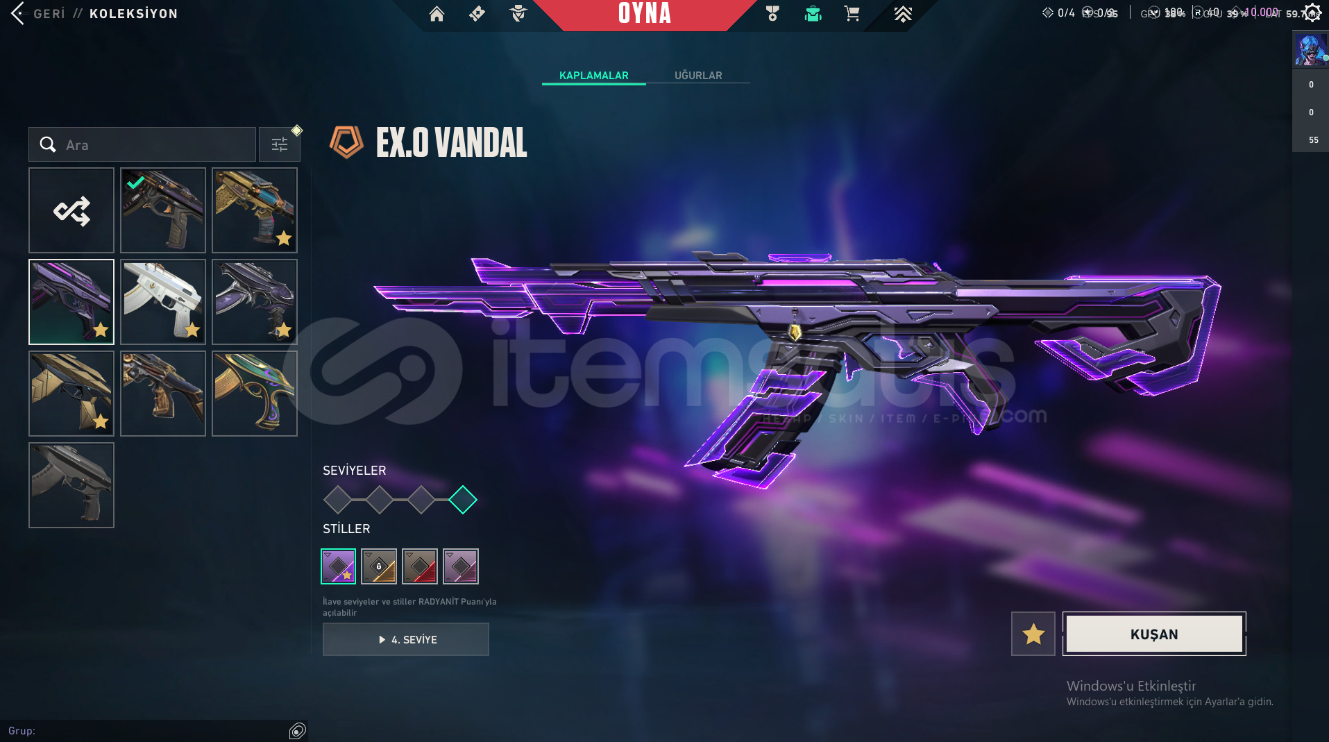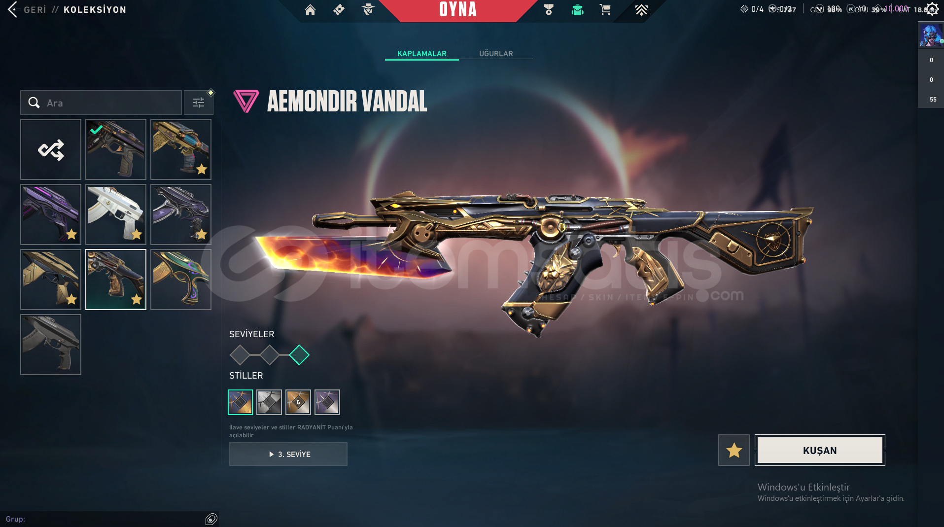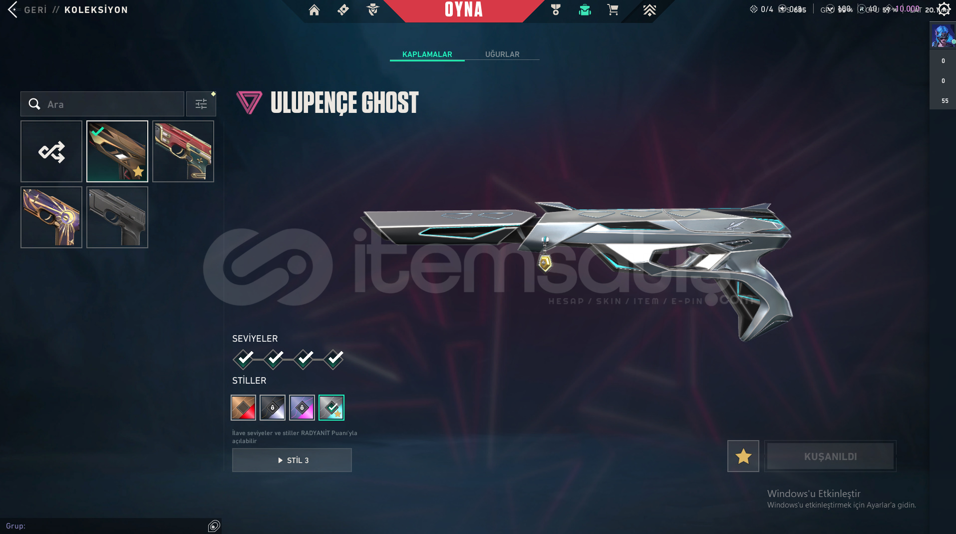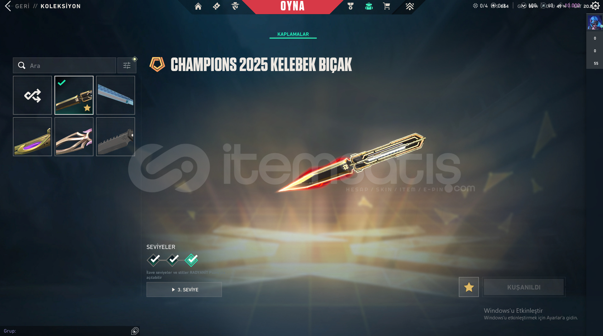 • Skinler: Arcane Vandal - Prelude to Chaos Vandal - Araxys Vandal - EX.O Vandal - Aemondir Vandal - Neptune Vandal - Reaver Vandal / Magepunk Phantom / Recon Guardian / Doombringer Sheriff - Prelude to Chaos Sheriff / RGX 11z Pro Classic / XERØFANG Ghost / Sandswept Dagger - Equilibrium - Mystbloom Kunai - Champions 2025 Butterfly Knife VE DAHA SAYAMADIKLARIM İLE BİRLİKTE TOPLAM 42 SKİN MEVCUTTUR.