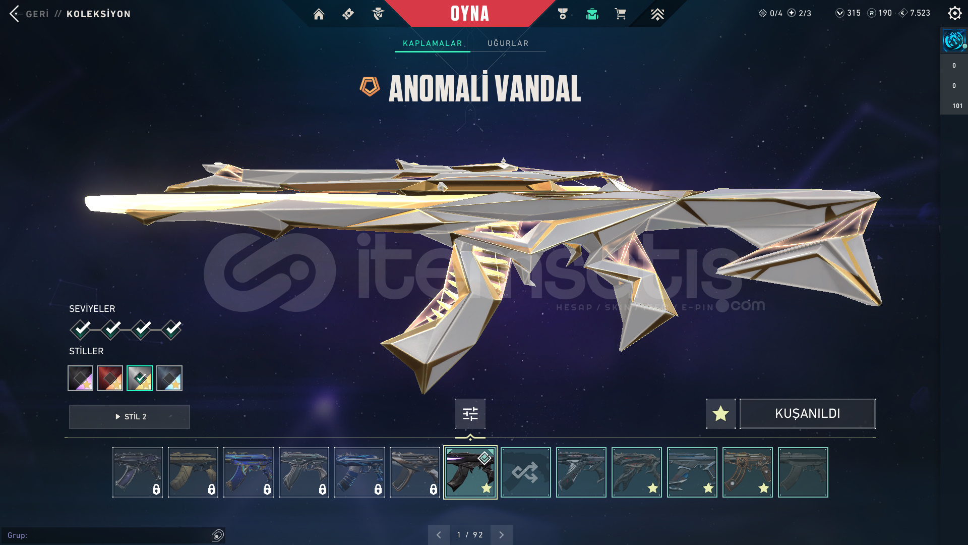 • Skinler: Kuronami Vandal - Primordium Vandal - Singularity Vandal - Magepunk Vandal / Champions 2024 Phantom - Recon Phantom / Elderflame Operator - Forsaken Operator / Kuronami Sheriff - Ion Sheriff / Prime Guardian / Reaver Ghost - Magepunk Ghost / VCT x LEV Classic / Kuronami no Yaiba - Torque Coiler - Byteshift Knife - Overlay Dagger VE DAHA SAYAMADIKLARIM İLE BİRLİKTE TOPLAM 58 SKİN MEVCUTTUR.