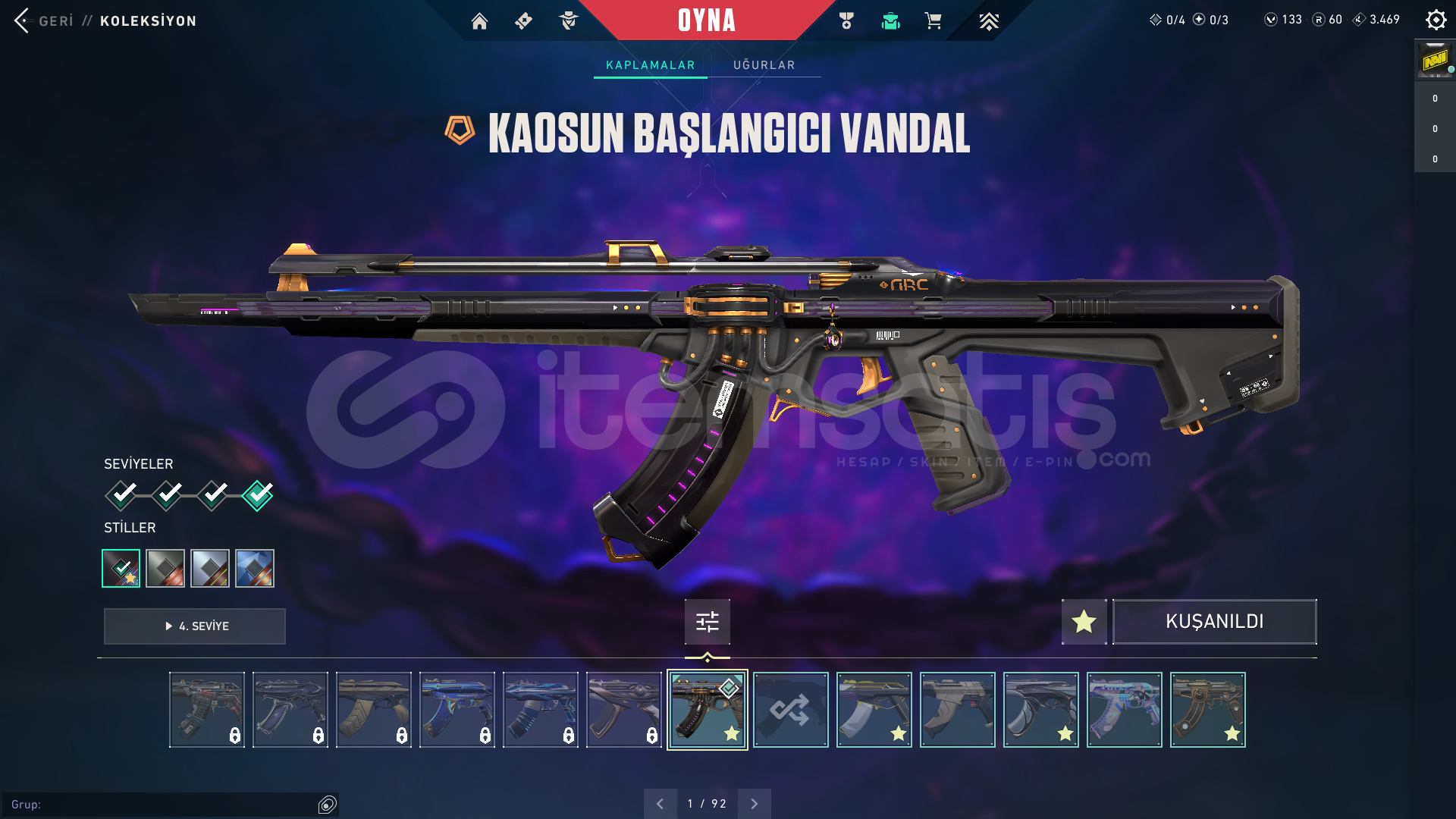 • Skinler: Prelude to Chaos Vandal - Prime Vandal - Divergence Vandal - Forsaken Vandal - Magepunk Vandal / RGX 11z Pro Phantom / Prelude to Chaos Operator / RGX 11z Pro Outlaw / Sovereign Ghost - XERØFANG Ghost / VCT25 x NAVI Classic / Kuronami no Yaiba - Bubble Pop Light Stick - ATLAS // CMD Baton - Torque Coiler - Solarex Relic - Hieroscape Blades - Overlay Dagger VE DAHA SAYAMADIKLARIM İLE BİRLİKTE TOPLAM 90 SKİN MEVCUTTUR.