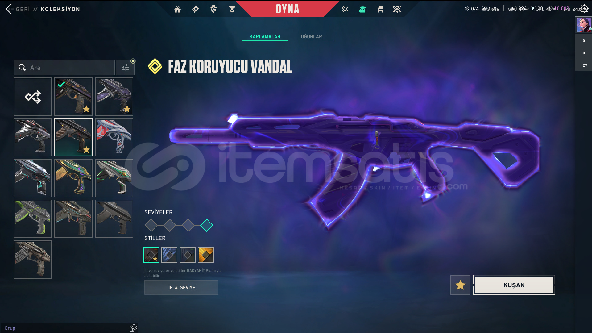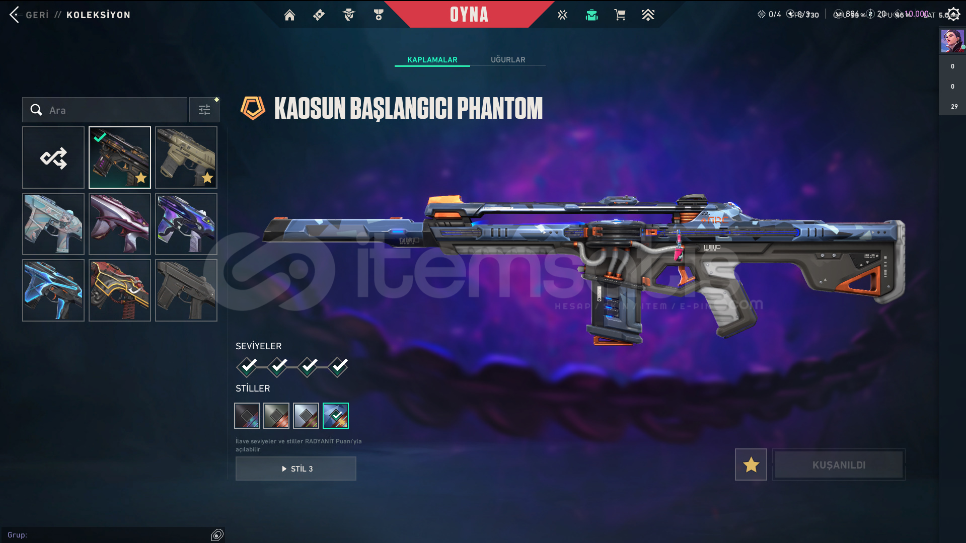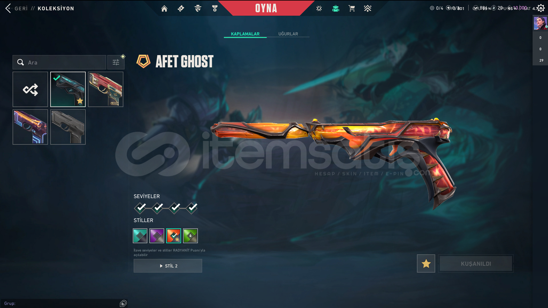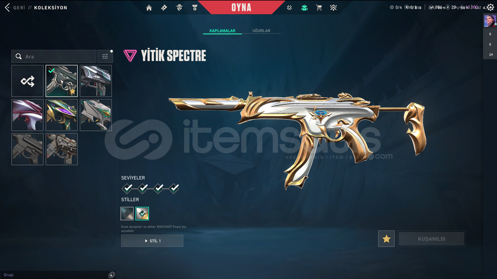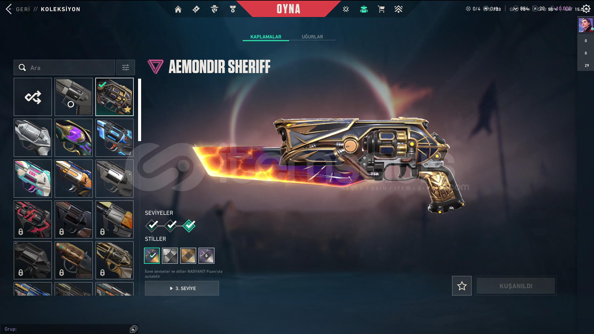 • Skinler: VE DAHA SAYAMADIKLARIM İLE BİRLİKTE TOPLAM 96 SKİN MEVCUTTUR.