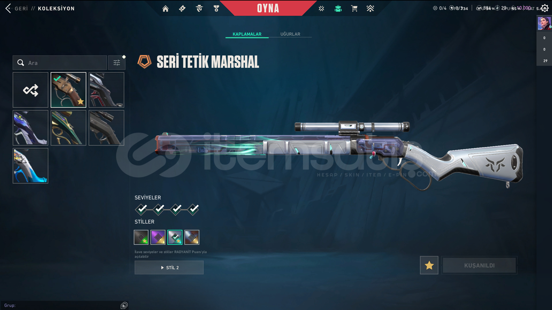 Srisee'den OKUL fırsatı❤️Srisee - Birbirinden Şık Skinlerle Donatılmış Hesap!Hesap Detayları:Derece: DERECESİZSeviye: 174Ajanlar: Neon - Breach - Viper - Raze - Harbor - Skye - Fade - Chamber - Yoru - KAY/O - Omen - Astra - Cypher - Reyna - Gekko - KilljoySkinler: VE DAHA SAYAMADIKLARIM İLE BİRLİKTE TOPLAM 96 SKİN MEVCUTTUR.Mevcut VP: 894Radyant Puanı: 20Kingdom Kredisi: 10.000Neden Srisee Mağazası'n&#...