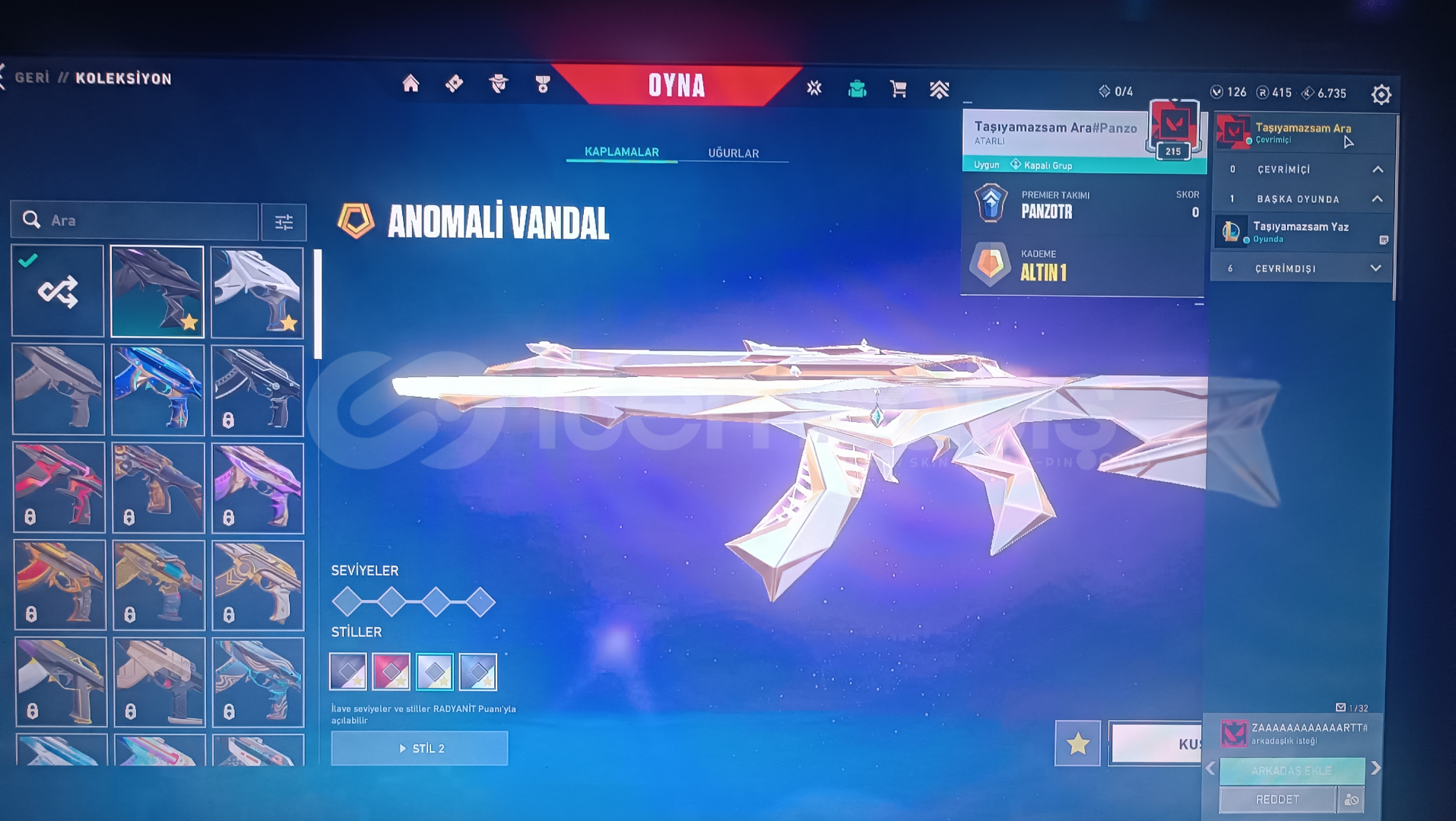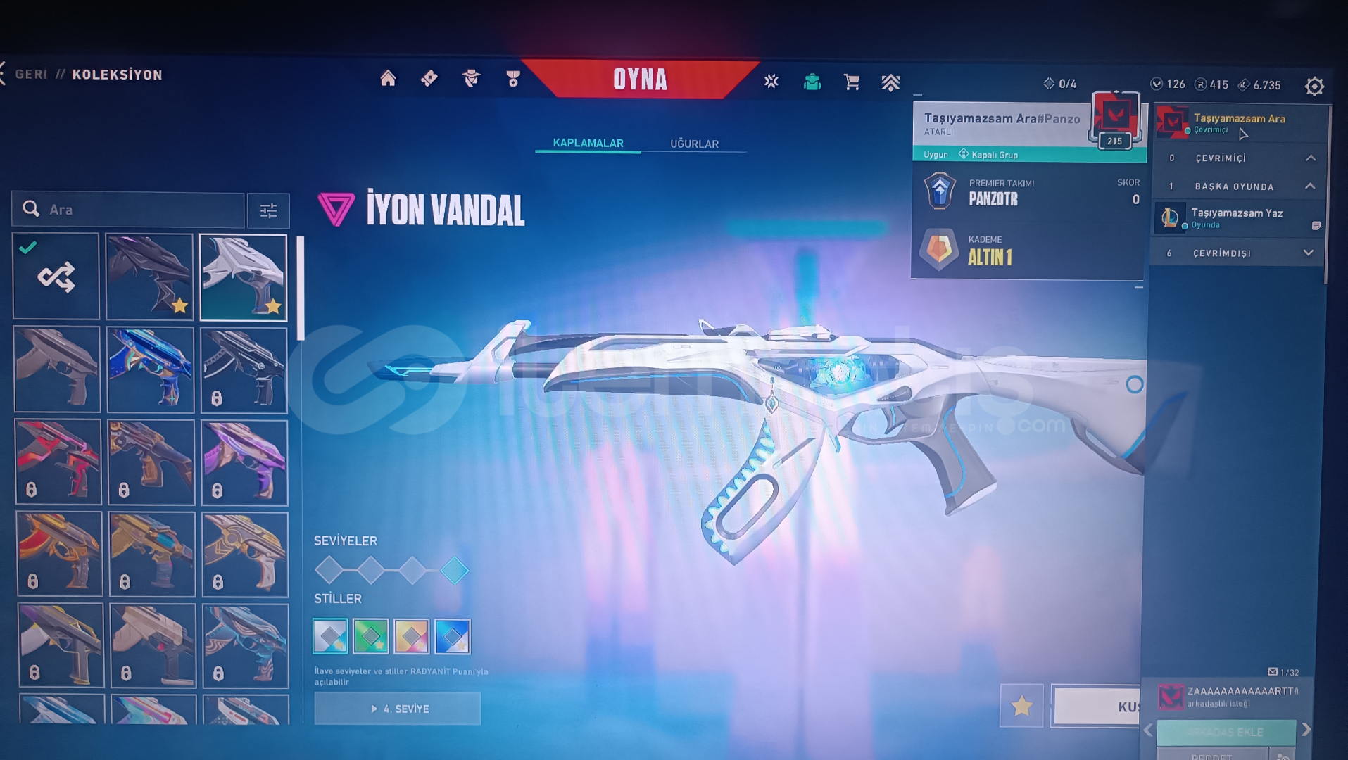 Öncelikle merhabalar,Hesap main hesabımdır.En başından beri sadece ben giriş yaptım.Hesap kurtarma bölümünden hesabı geri çekebileceginiz tüm bilgileri size atacagım.Bütün alınan riot vp kodları.Eski alınan nickler ve dahası ile size teslim edilecektir.Hesabın İçindekiler! [Paralı Olan Skinler]Anomali VANDALİyon VANDALYağmacı PHANTOMYitik OperatörRGX KEL...