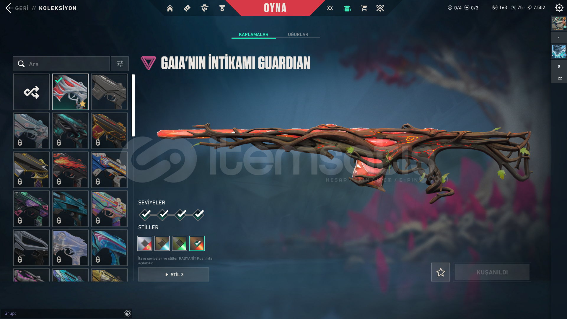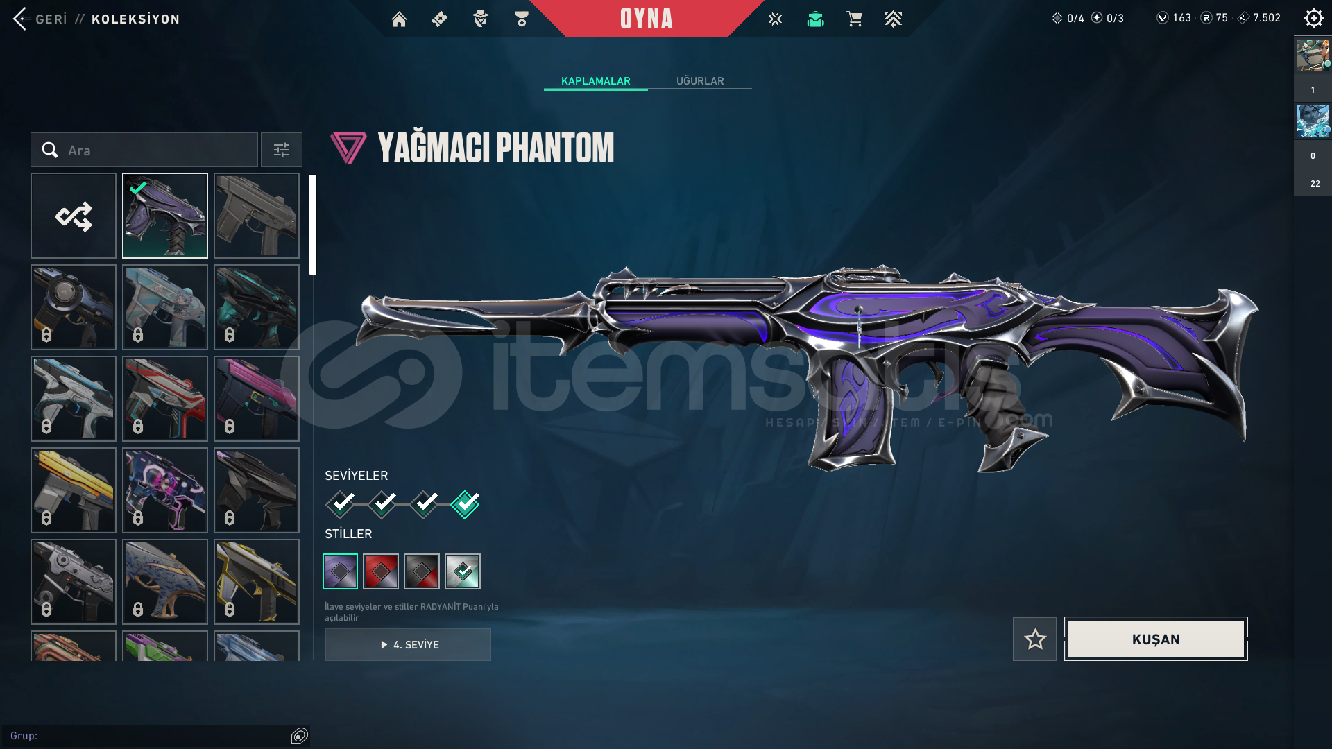 Hesabın tüm bilgileri degisecektir (eposta-şifre.)Tr serverdırHesabı aldıgınızda aktif oldugum an hemen teslim edeceğimİADE YOKTUR!!!OTAMATİK TESLİMAT DEGILDIR HESABIN BILGILERINI AKTIF OLDUGUM ZAMAN VERECEGIM SORUN YAŞAMAMAK İÇİN!!!HESAPTA FOTOLARDAKI SKINLER MEVCUTTUR!163 vp vardır 75 radyanit vardır 7500 kingdom kredisi vardırpremierde kademe kısıtlaması mevcut