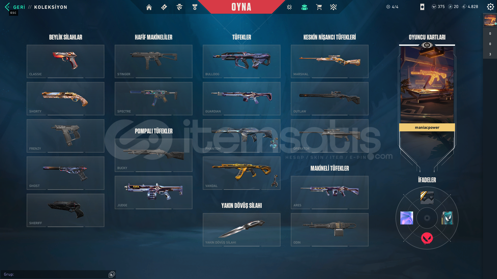 Sheriffghostvandalphantomspectrebuldogoutlawskinleri mevcuttur