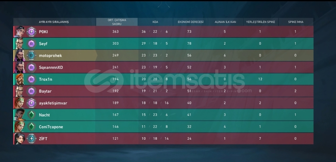 Güvenilirlik: Güv: 10/10 Memnuniyet: Mem: 10/10 İletişim: İlet: 10/10 Teslimat: Tes: 10/10