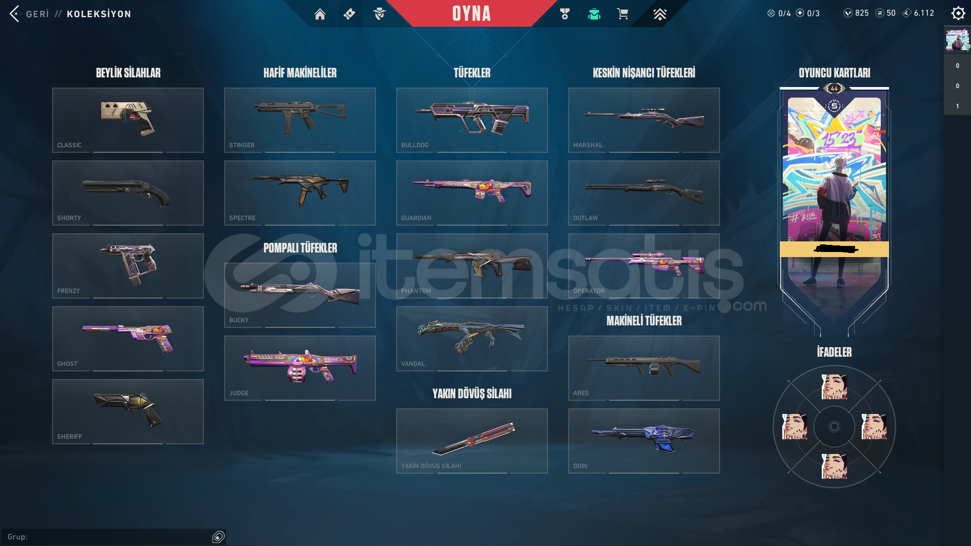 artık oynamadığım için satıyorum. en son rankı plat 2dir, bu sezon hiç maç yapılmamıştır. RGX Kelebek bütün renkleri açık. Ejder Vandal bütün renkleri açık, birkaç önceki sezonun bitirilmiş battle passi, Veto dahil 14 karakter açık değil. 825 vp vardır. alıcısına şimdiden hayırlı olsun.