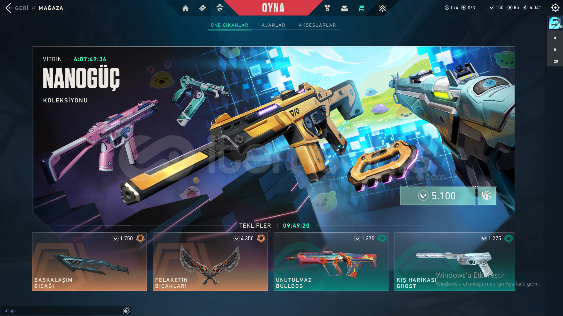 HESABIN ACT RANKI PLAT OLMAKLA BERABER 80 SEVİYEDİR VE TÜM AJANLAR AÇIKTIR AYRI OLARAK 150 VP VE 85 RADYANİT BULUNMAKTADIR