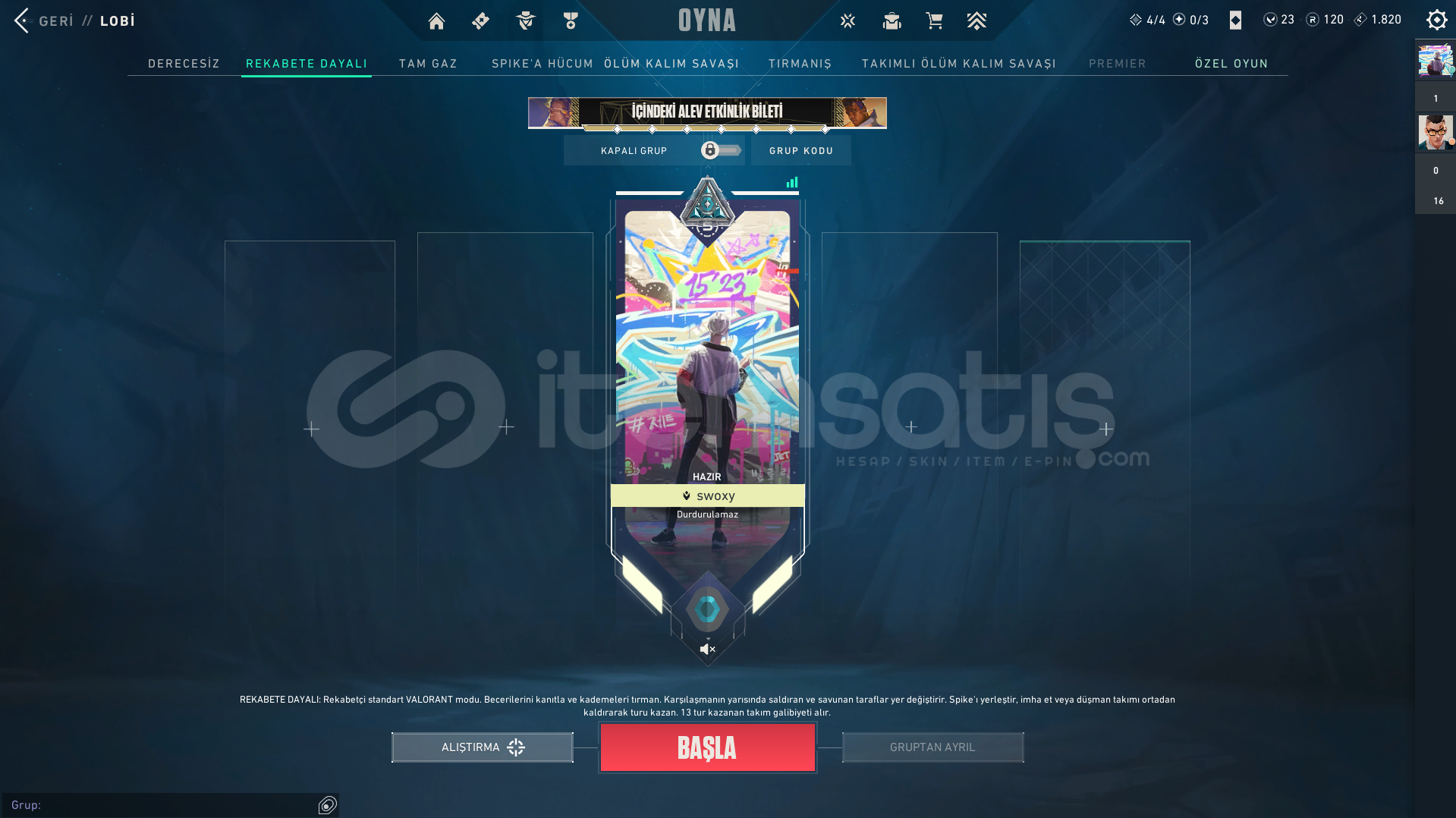 🎮 VALORANT Hesap Satılık! 🎮🔥 Detaylar:Seviye: 100+Rütbe: Platin 1Battle Pass: Var (açılmış ve dolu)Envanter: Yağmacı seti mevcut!Hesap tamamen aktif ve sorunsuzMail değişimi yapılabilirUygun fiyata, anında teslim!💬 Hesap hiç ban yemedi, güvenle oynayabilirsiniz.İsteyenlere ekran görüntüsü veya kanıt sunabilirim.💸 Fiyat: 570saten suan ındı&...