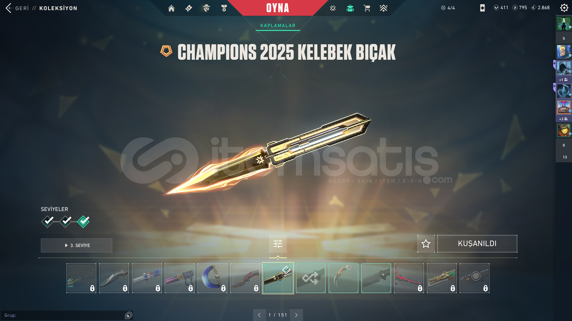 -Yağmacı vandal-Champions vandal-Yağmacı Şheriff-Champions 2025 Kelebek Bıçak-Hızlı ve Ölümcül Karambit-Hızlı ve Ölümcül Phantom-Platin 2 -325 Seviye