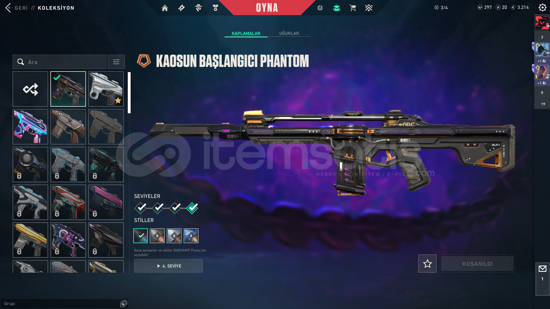 MAİLLİ ÖMÜRLÜK VALORANT HESABI İLK MAİLİ MEVCUT BAN YİYEN HESABIM AÇILDI O YÜZDEN SATIYORUM İLK MAİLİ TELİ HERŞEYİ BANA AİT İYON PHANTOMSERİ TETİK PHANTOMKAOS PHANTOMEJDER VANDALCESUR YÜREK VANDALCESUR YÜREK GHOST2 SAVAŞ BİLETİ