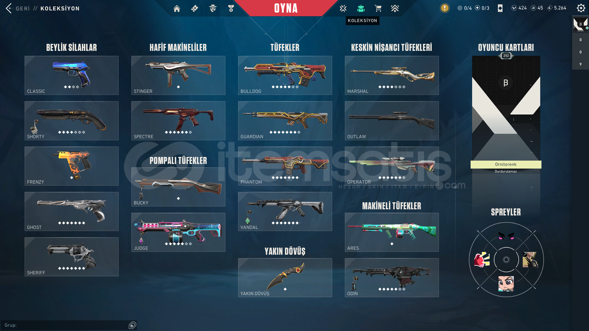 yağmacı , asil , champions , ejderin buyruğu vandal vardırchampions bıçağı , oni pençe , altın afet hançer , prizma balta bıçakları varasil , oni , iyon phantom varyağmacı sheriffatih ghostyağmacı odinkaosun başlangıcı shortyoni bulldogışık muhafızları operatorrgx guardiandelipop judgeanomali spectrefatih marshallve birçok normal skin daha varhesap beta...