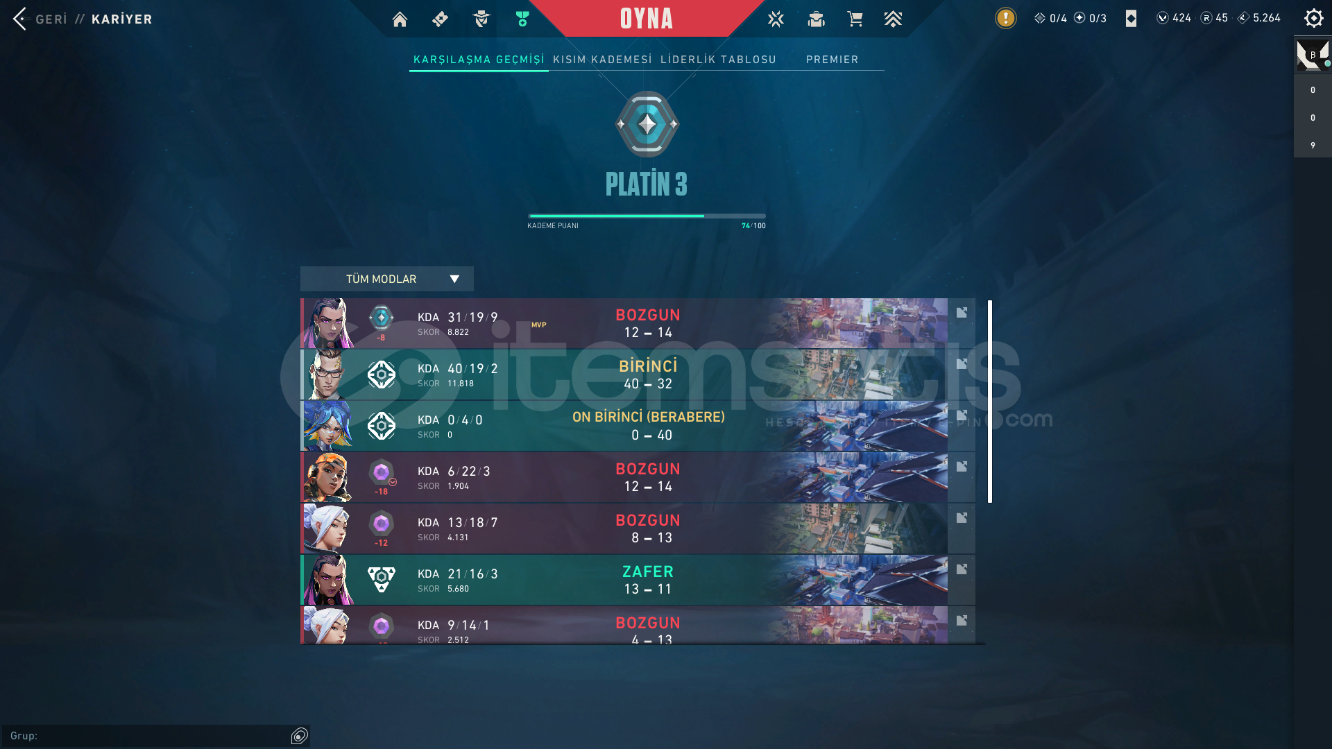 PLATİN 3 FULL HESAP ŞAHSİ HESABIM