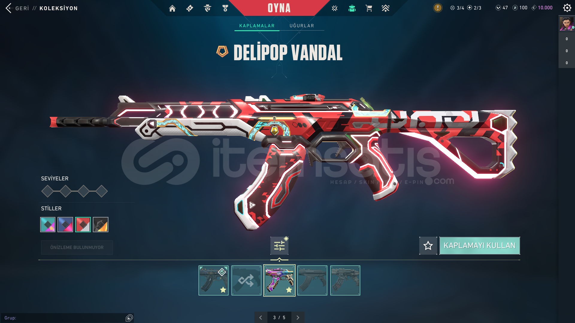 HESAP HAKKINDAKİ DETAYLAR-KAOS VANDAL-DELİPOP VANDAL-HELEZOM PHANTOM-ÖZEL HAREKAT PHANTOM-YAĞMACI KARAMBİT-YAĞMACI SHERİF-KRONAMİ SPECTRE/BATEL PASS SKİNLERİ MEVCUTTUR,/HESAPTA TÜM SKİNLERİN SEVİYESİ VE RENK SEÇENEĞİNİN HEPSİ AÇILMIŞTIROTOMATİK TESLİMATTTIR HESABI ALDIĞINIZDA KULLANICI ADI VE ŞİFRE OLARAK TESLİM EDİLİR. SİZDE MAİL DE&...