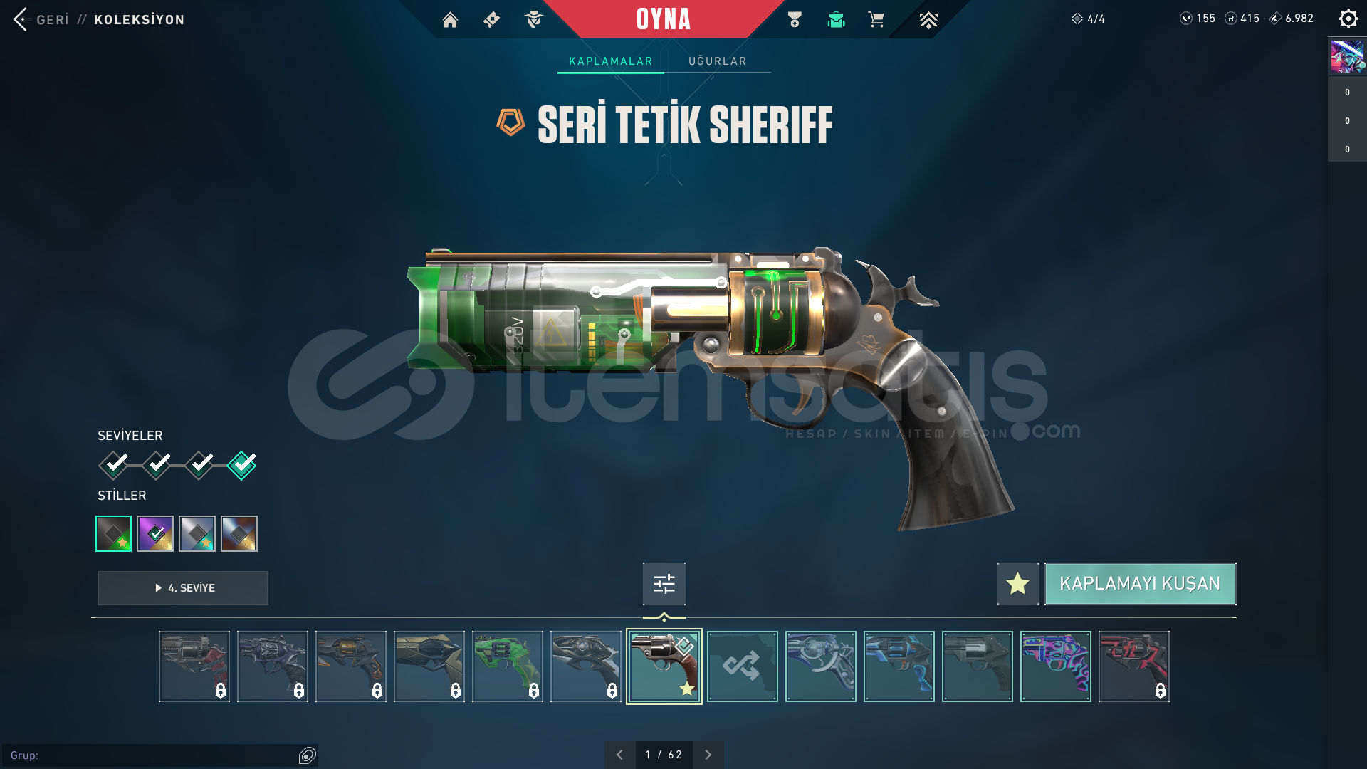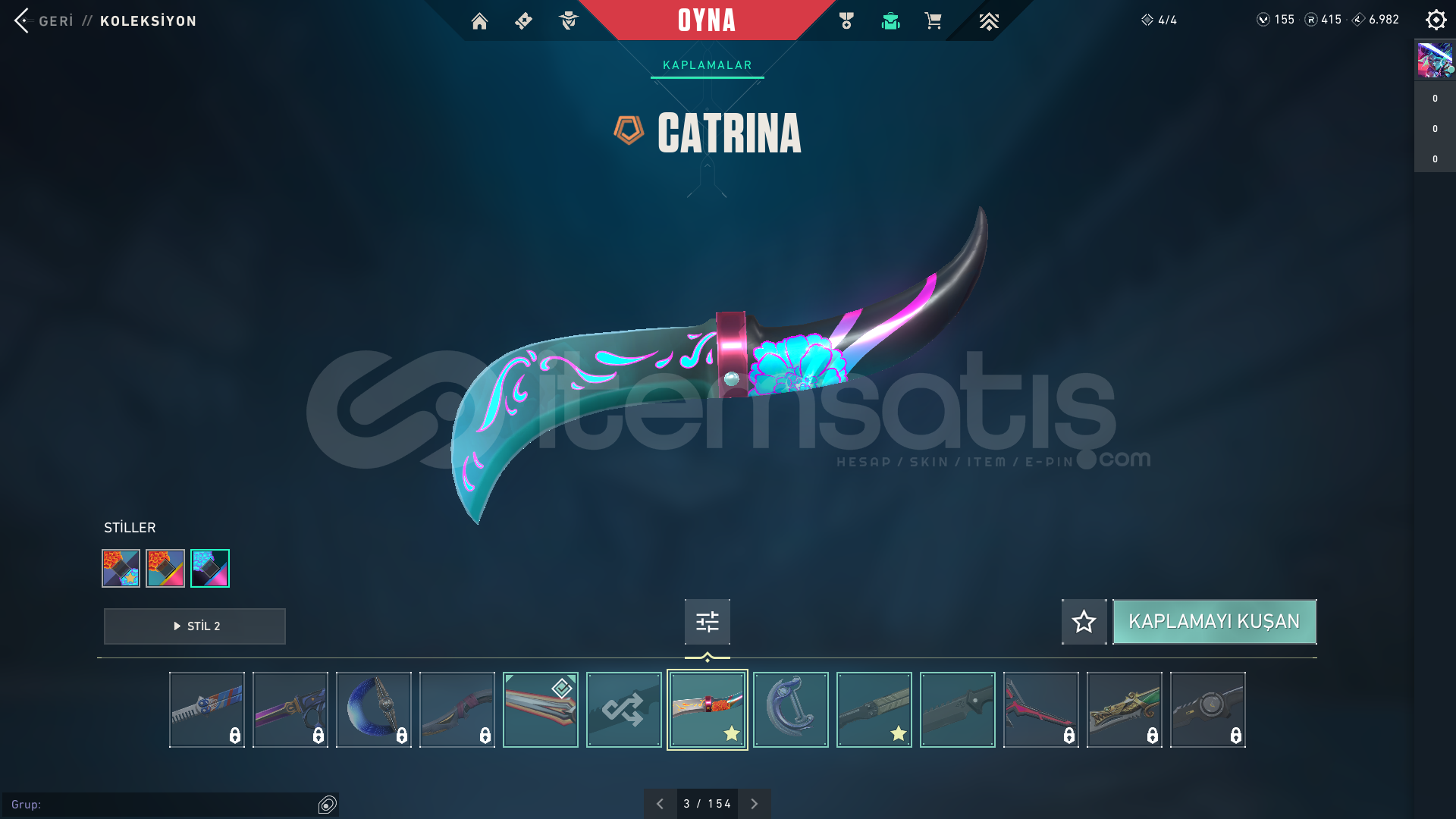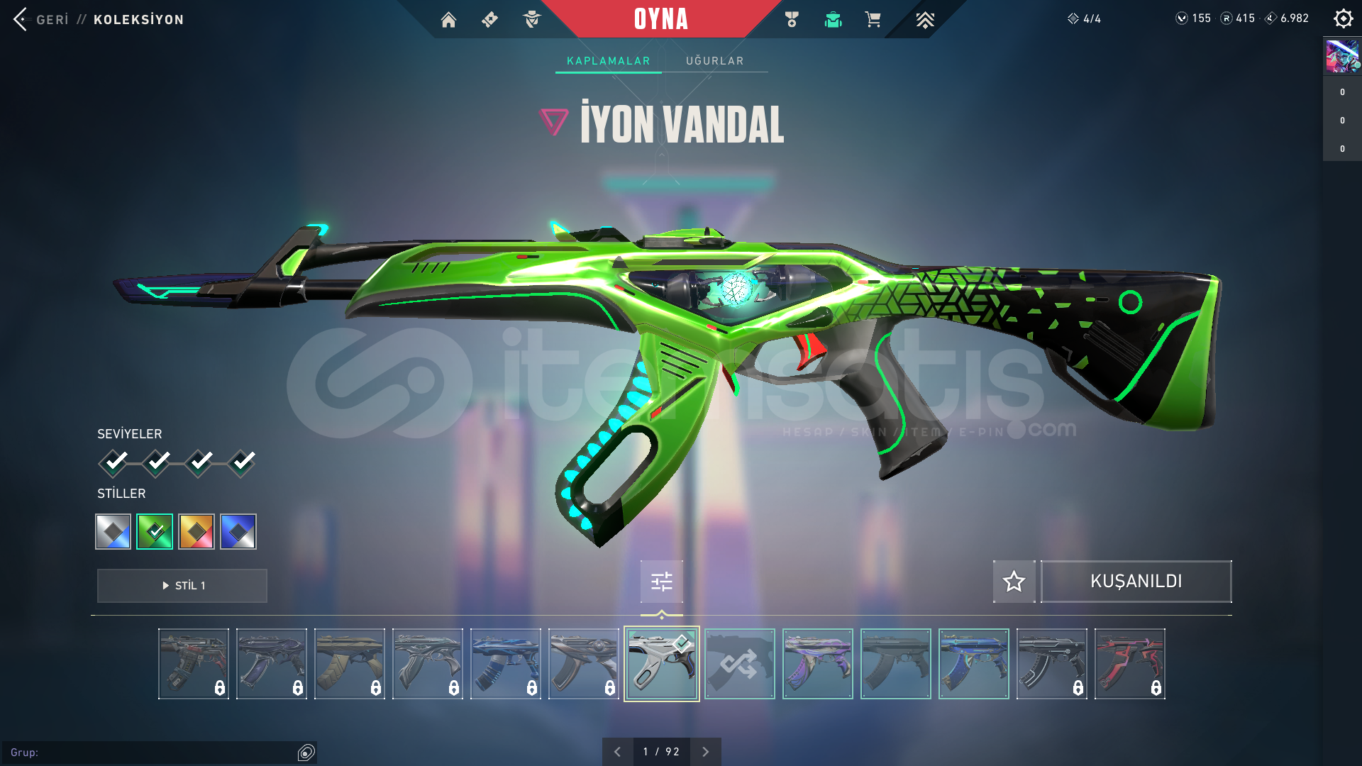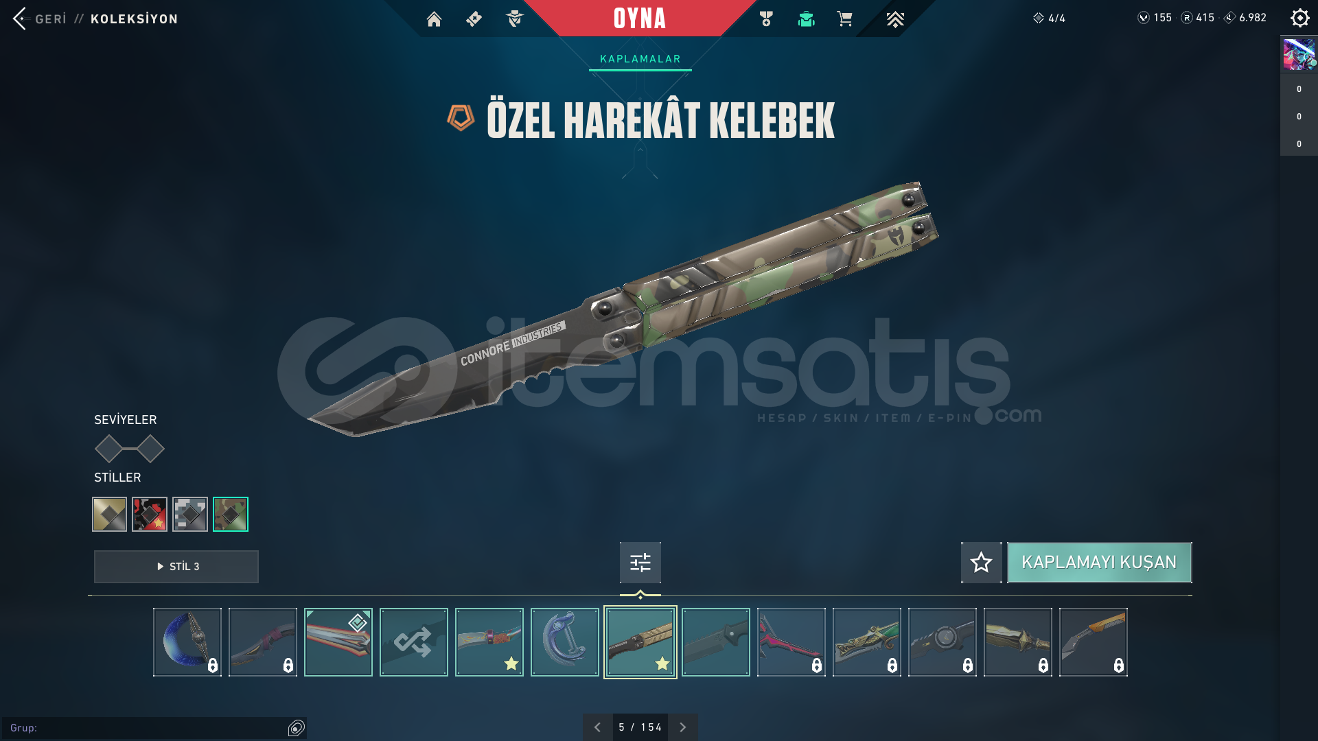 /NOT/ HESAPTA 415 RADYANİT VARDIR, HESAPTAKİ TÜM SKİNLERİN DESEN VE SEVİYELERİ MAKS...