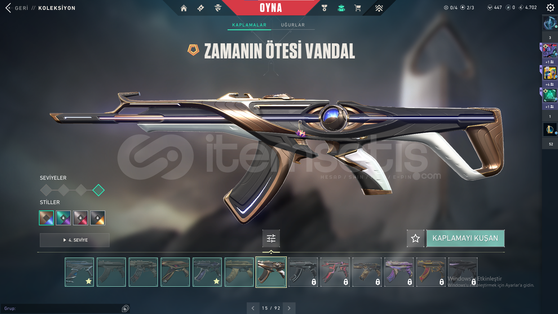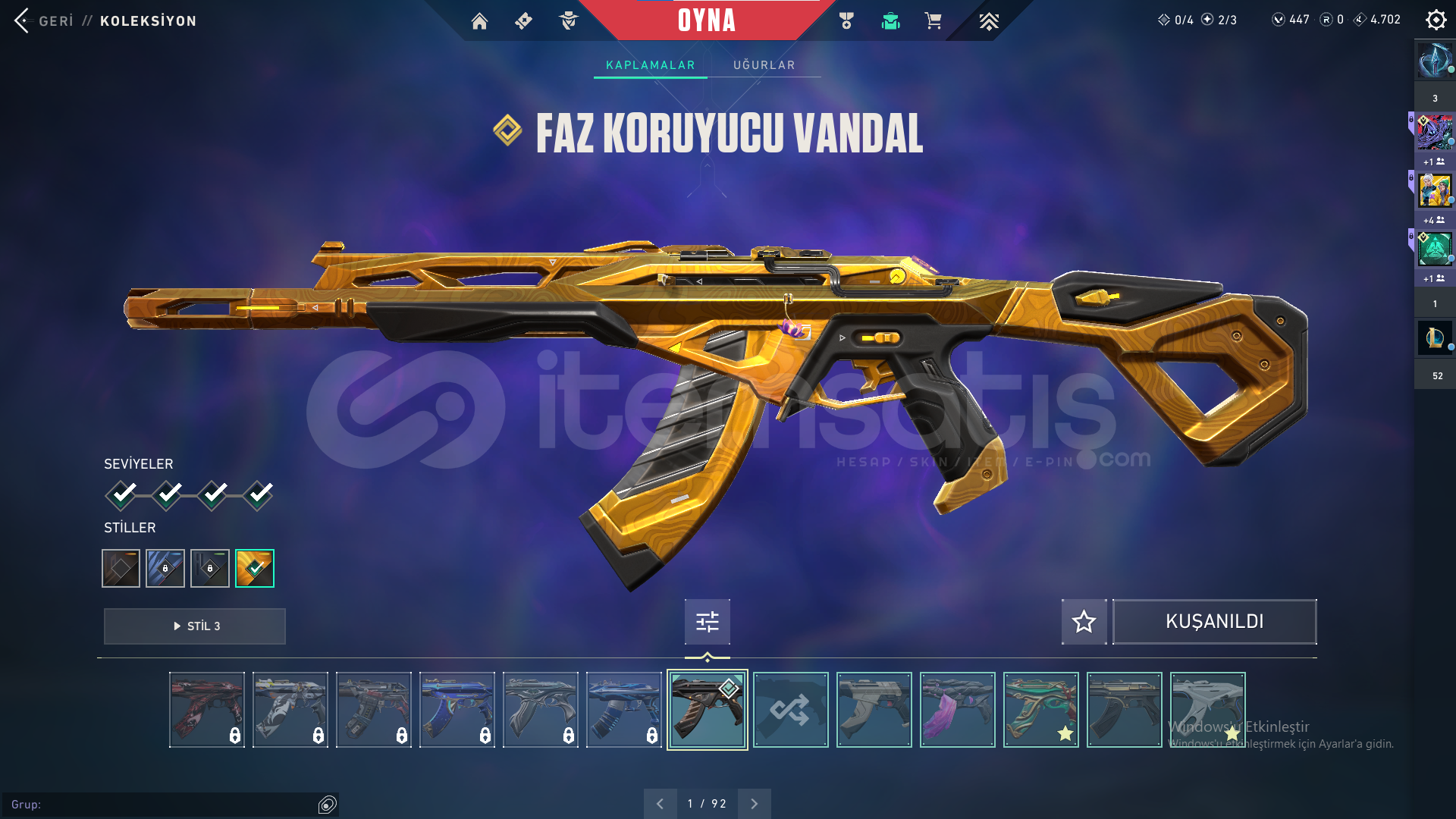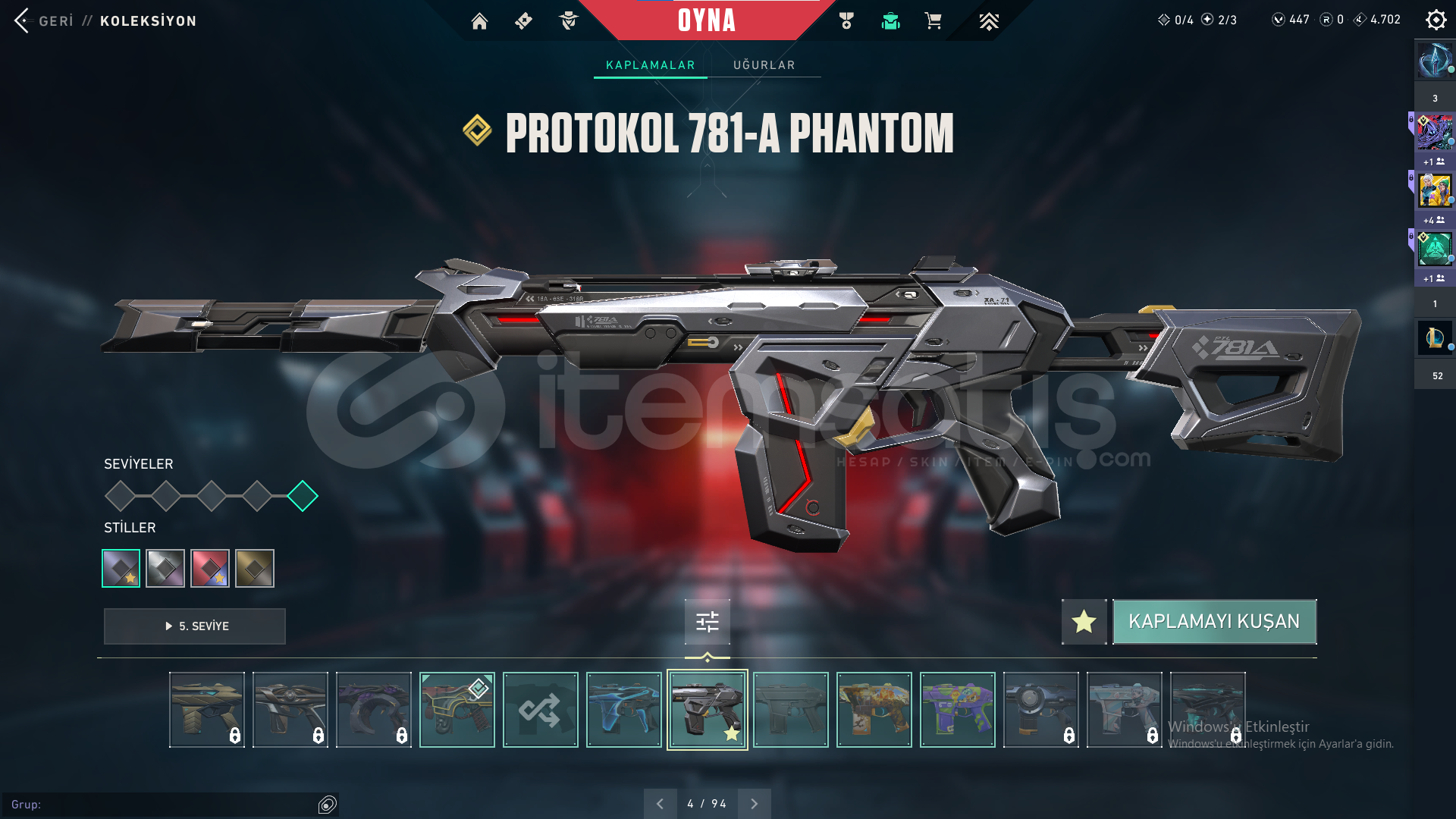 Faz koruyucu VandalDolmır İntikamı VandalEjder Buyruğu Vandalİyon VandalKoronami VandalUlupençe Vandal Yağmacı VandalYıldız Belası VandalZamanın Ötesi VandalıOni PHANTOMPROTOKOL 781-A PHANTOMFaz Koruyucu GhostCesur Yürek GhostKoronami SheriftPROTOKOL SheriftDelipop OperatörAnomali SpectreAsil GuardınYoru'nun Janti KarambitNot: Hesabın numarası kayıp oldu için. bir sorun olmaz.