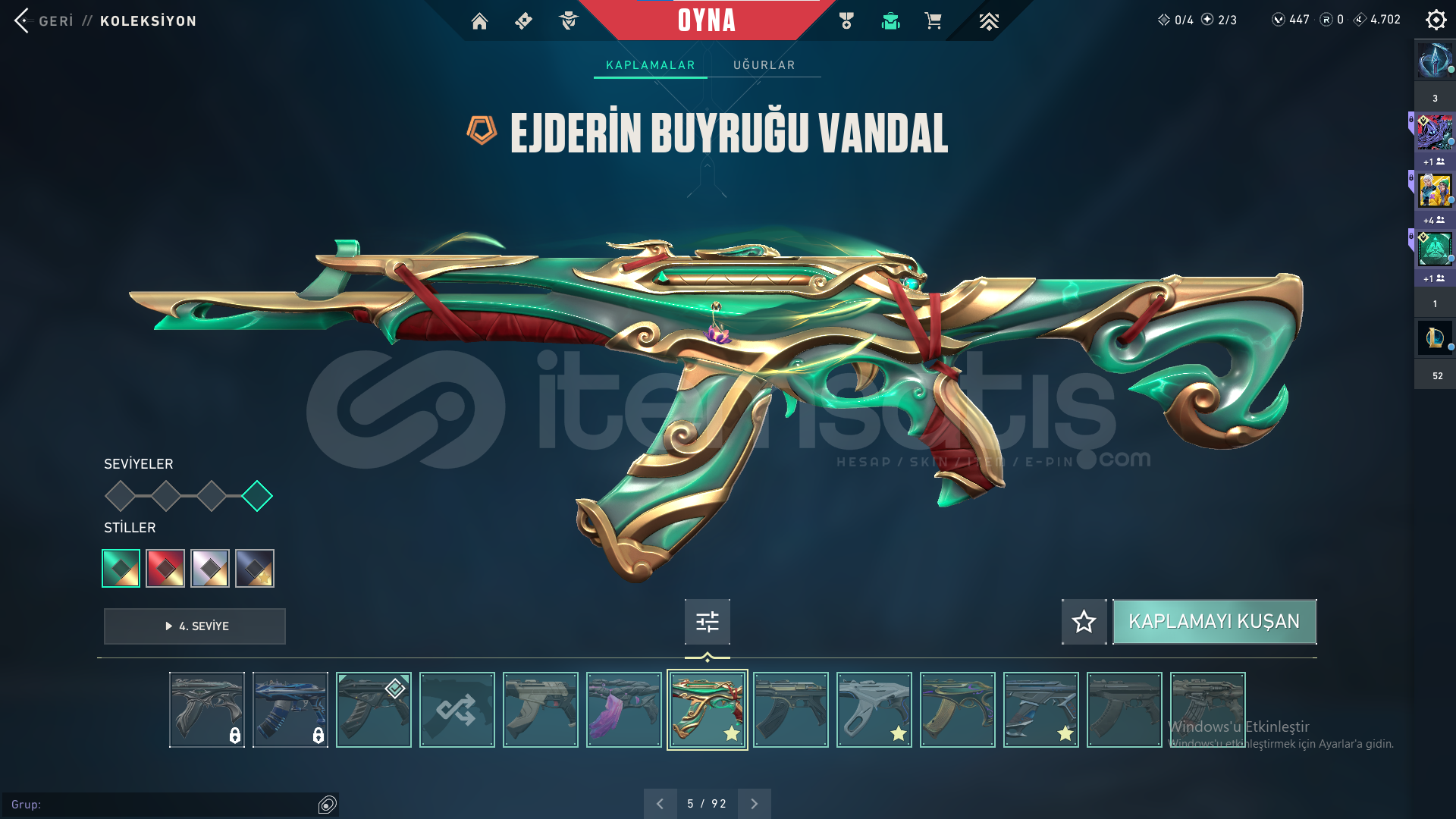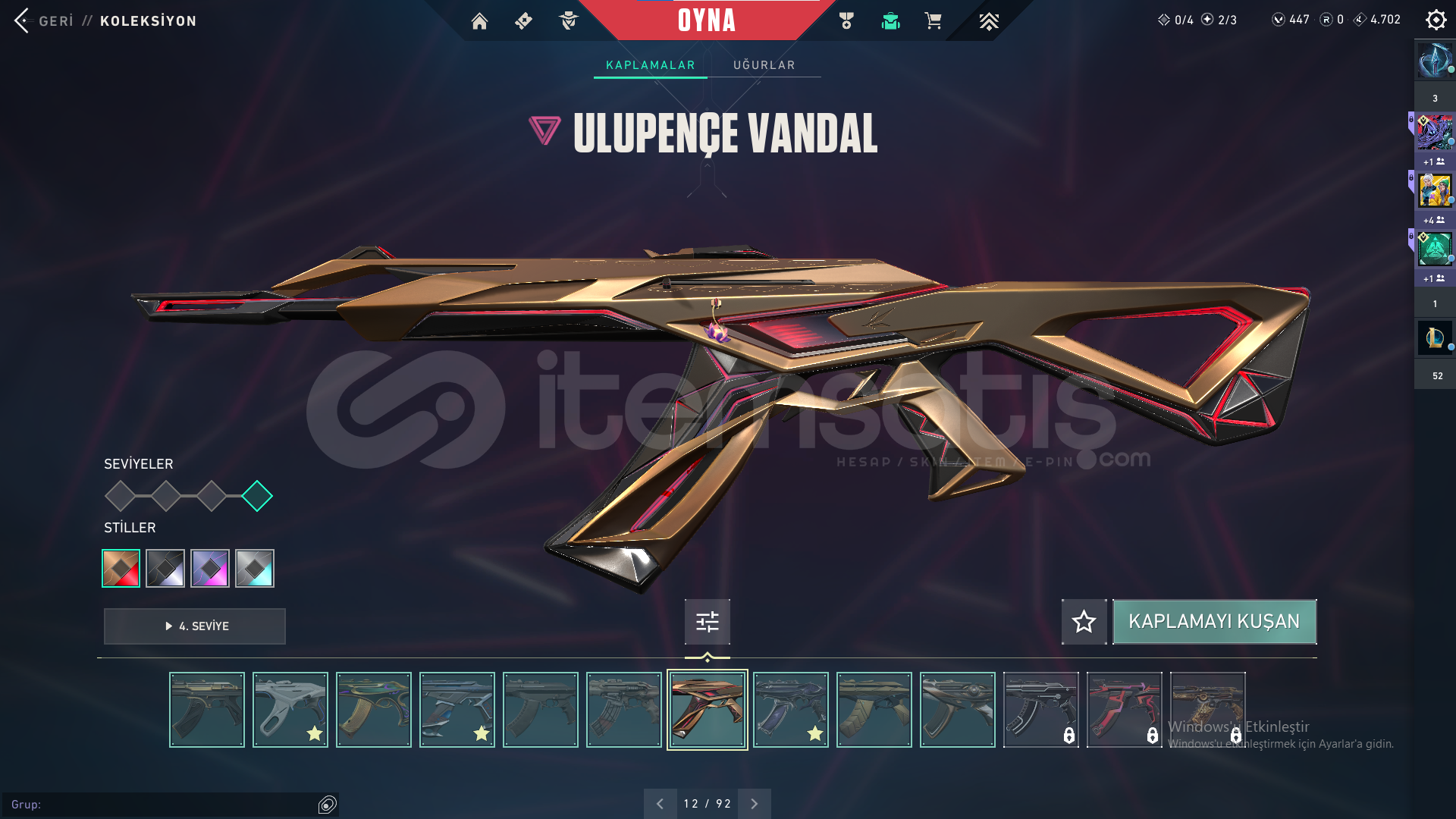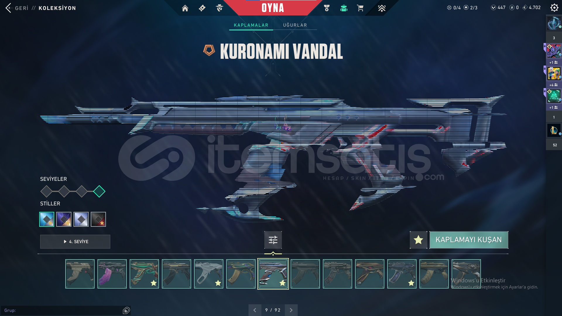 Faz koruyucu VandalDolmır İntikamı VandalEjder Buyruğu Vandalİyon VandalKoronami VandalUlupençe Vandal Yağmacı VandalYıldız Belası VandalZamanın Ötesi VandalıOni PHANTOMPROTOKOL 781-A PHANTOMFaz Koruyucu GhostCesur Yürek GhostKoronami SheriftPROTOKOL SheriftDelipop OperatörAnomali SpectreAsil GuardınYoru'nun Janti KarambitNot: Hesabın numarası kayıp oldu için. bir sorun olmaz.