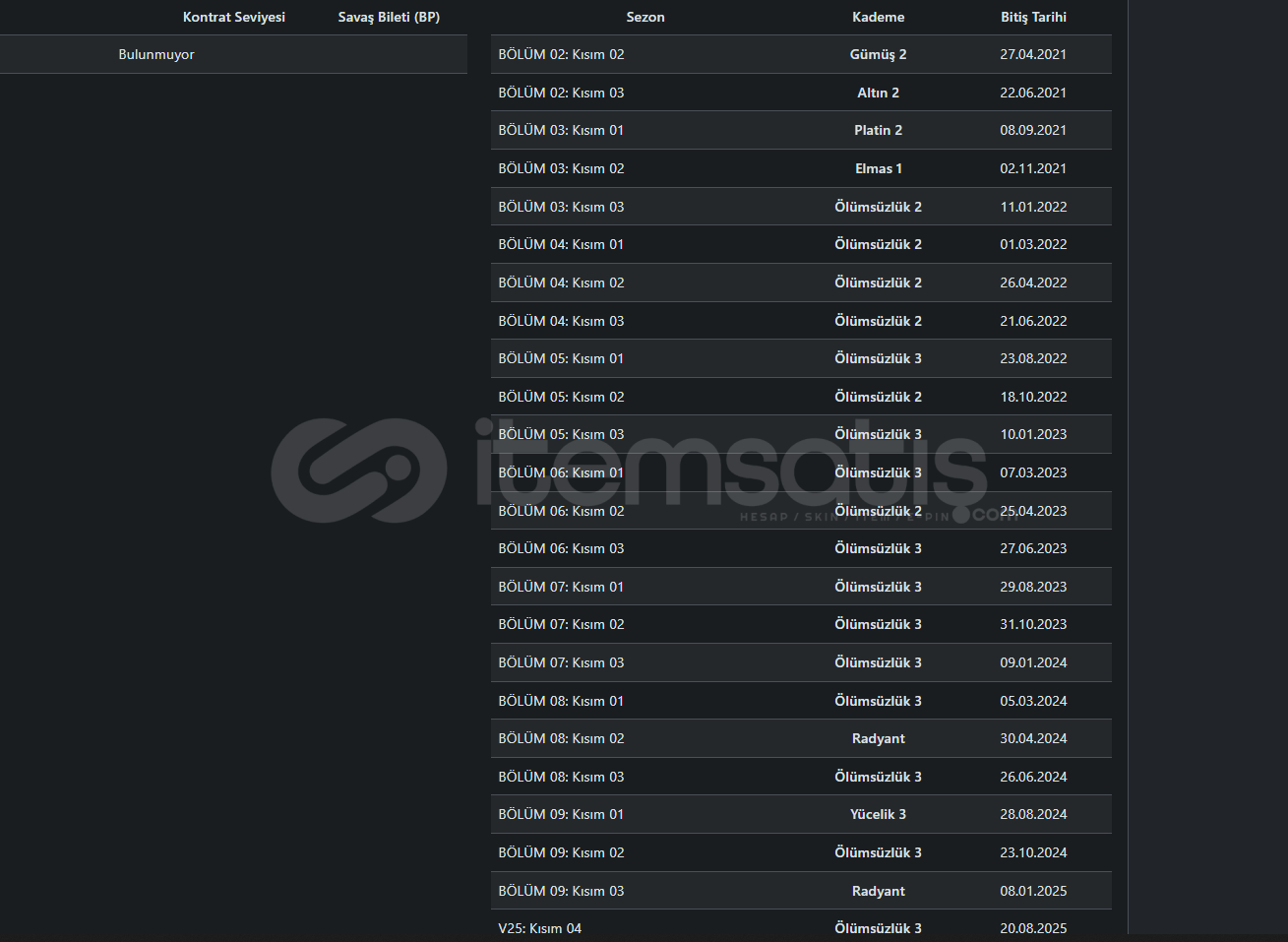 Kişisel hesabım satılıktır+456 skin4x Radiant Uğurluğu10x İmmortal Uğurluğu4x Premier Şampiyon uğurluğu35k tl yatırılmıştırFiyatta pazarlık yok hesap değerli.Alana hayırlı olsun.+16 Mağaza satışım var aldıktan sonra puan verip yorum atarsanız çok memnun olurumİyi forumlar...