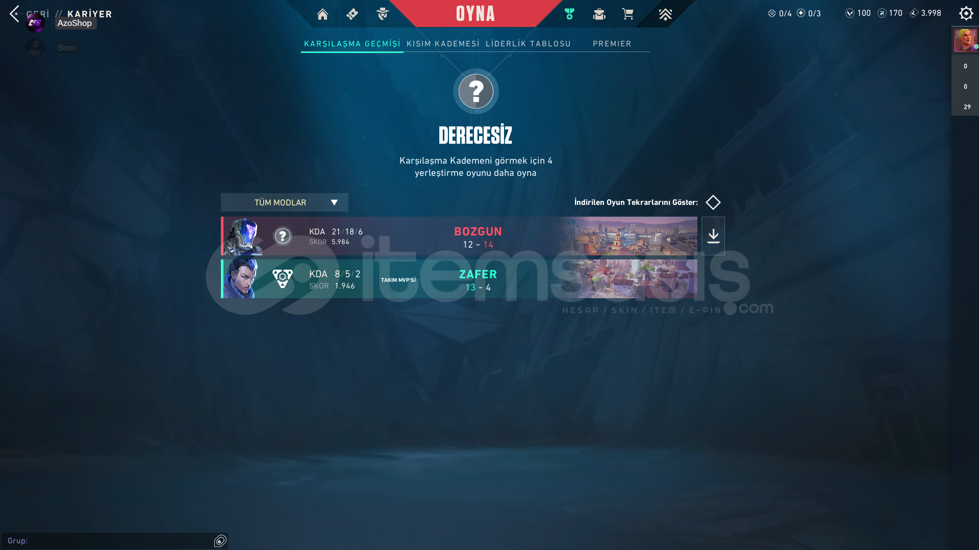 Ürün Hakkında Bilgi;İLANI SATIN ALDIĞINIZDA 7/24 OTOMATİK OLARAK TESLİM EDİLİR.RANK - DRECESİZHESAP SEVİYESİ - 65SKİN SAYISI - 4VP SAYISI - 100+ 100.000 BAŞARILI İŞLEM İLE GÜVENLE ALIŞVERİŞ YAPABİLİRSİNİZ