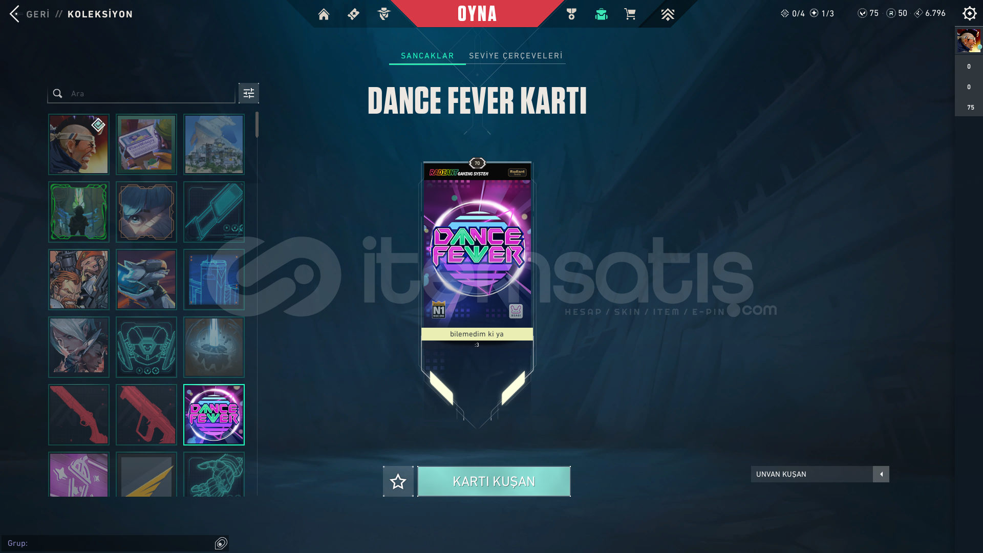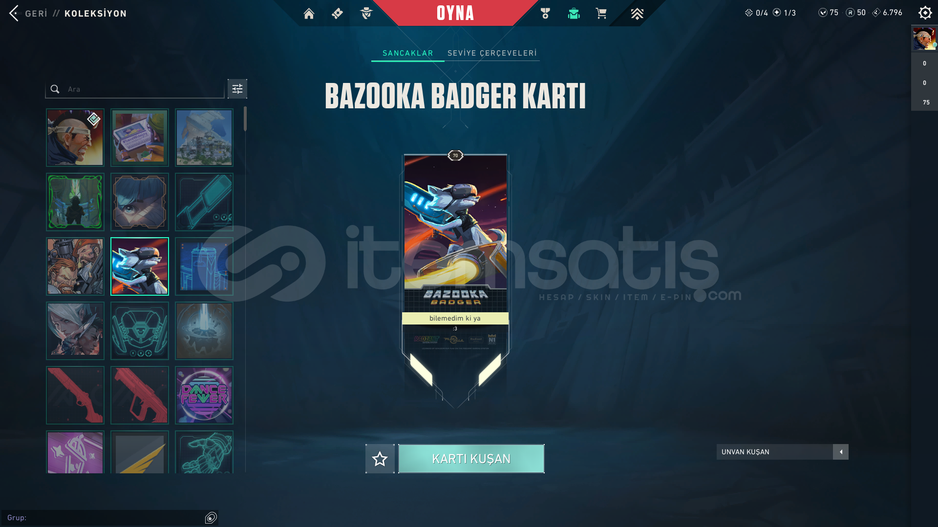 HESAPTA R.E.S SET VE ASİL VANDAL VARDIR.70 SVDİR.MAİL DEĞİŞTİRİLECEKTİR.EN SON OYNANAN SEZONUNDA ELMAS BİTİRMİŞTİRHESABIN İÇİNDEKİLERR.E.S SETASİL VANDAL3 FARKLI R.E.S PROFİL RESMİ3 FARKLI R.E.S UĞURLUĞU3 FARKLI R.E.S SPREYİTÜM SİLAHLAR MAKSLANMIŞ RENKLERİ AÇILMIŞTIR